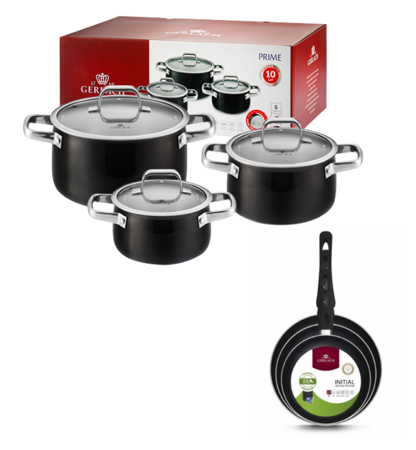 GERLACH PRIME Komplet Garnki z pokrywkami 6 el + patelnie Gerlach Initial 20, 24, 28 cm