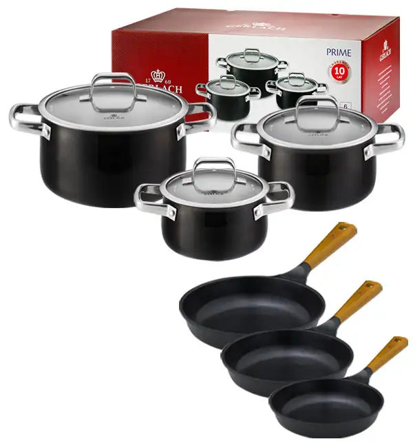 GERLACH PRIME Komplet Garnki z pokrywkami 6 el + patelnie Gerlach Natur 20, 24, 28 cm