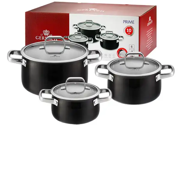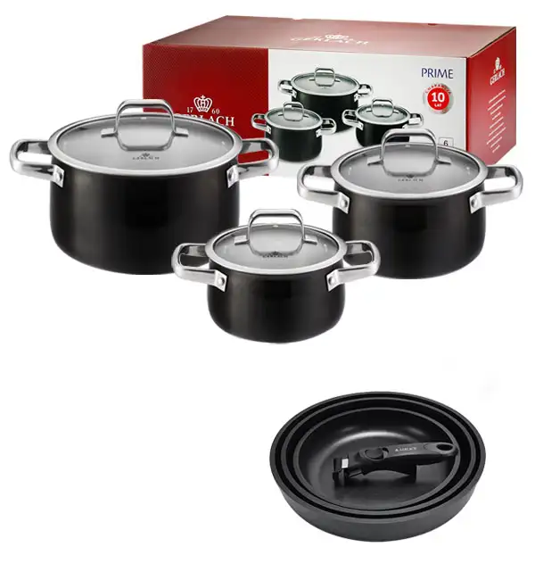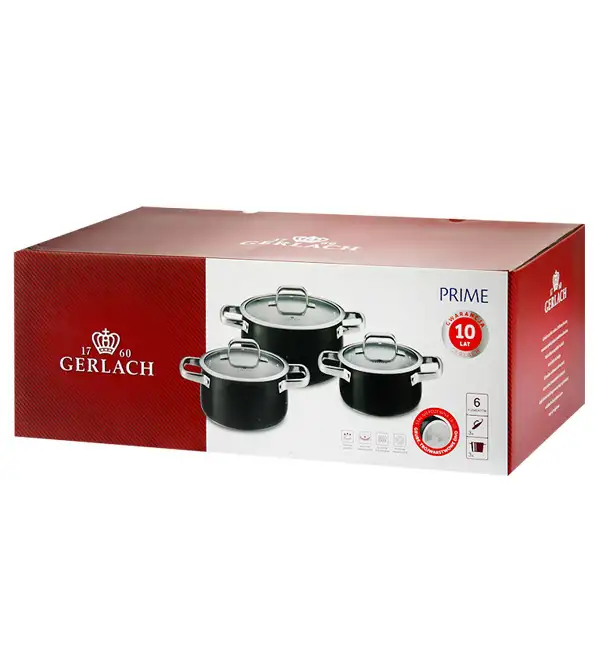 GERLACH PRIME Komplet Garnki z pokrywkami 6 el + patelnie Gerlach Smart Patelnia 20 24 28 cm