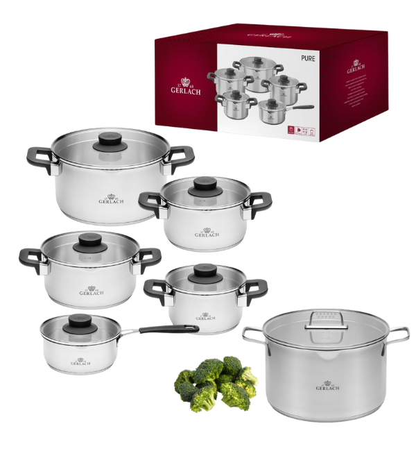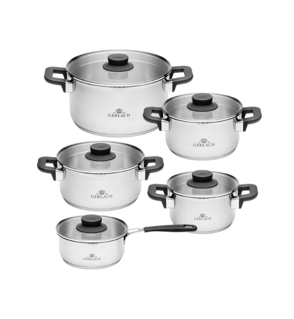 GERLACH PURE Komplet Garnki z pokrywkami 10 el / indukcja + Garnek Ambiente 10 L