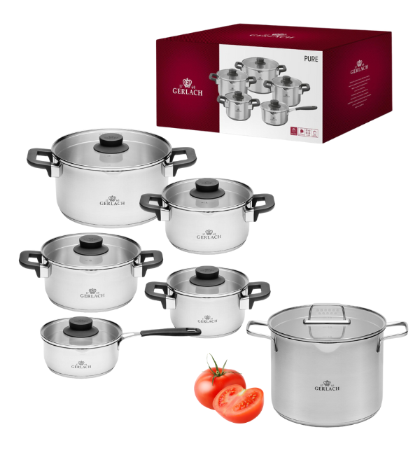 GERLACH PURE Komplet Garnki z pokrywkami 10 el / indukcja + Garnek Ambiente 7 L