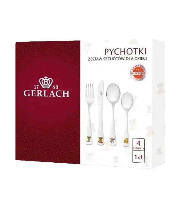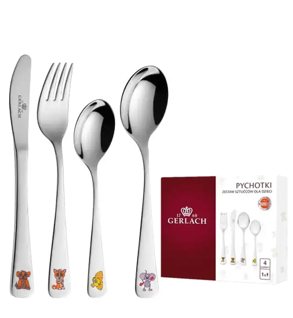 GERLACH PYCHOTKI Sztućce dla dzieci 4 elementy w pudełku / połysk