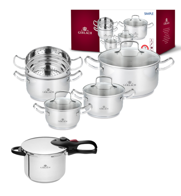 GERLACH SIMPLE Komplet Garnki z pokrywkami 9 el + szybkowar First 6 l 22 cm