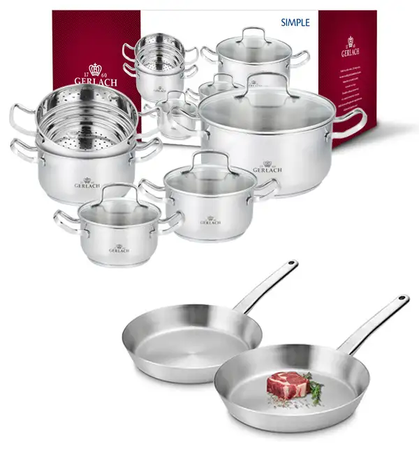 GERLACH SIMPLE Komplet Garnki z pokrywkami + wkład do gotowania na parze 9 el