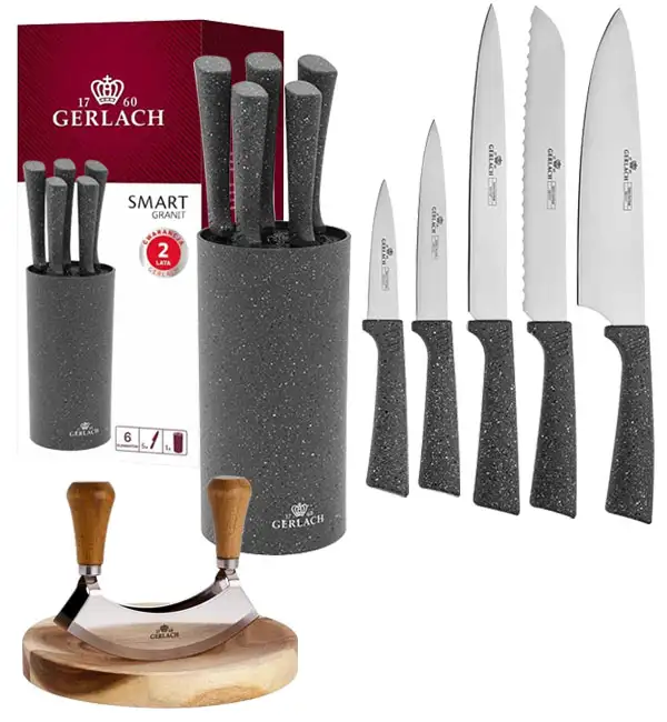 GERLACH SMART GRANIT Komplet 5 noży w bloku + Tasak do ziół z deską