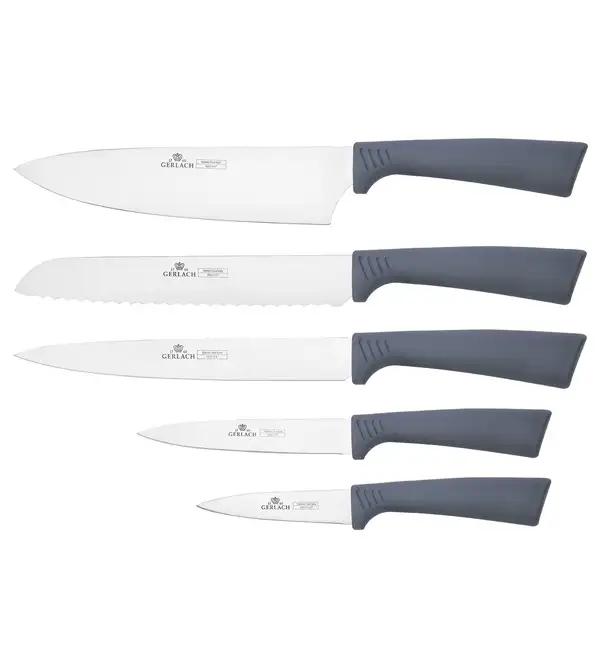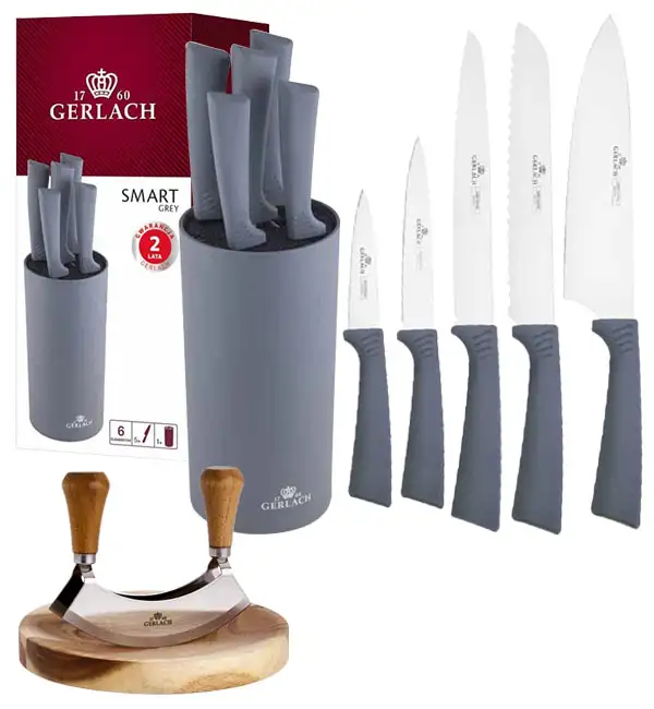GERLACH SMART GREY Komplet 5 noży w bloku + Tasak do ziół z deską
