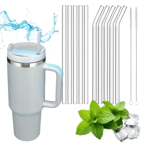IMCHEX | Szklane słomki 10 szt. do kubka termicznego dwa rodzaje + 2 czyściki / komplet 12 el