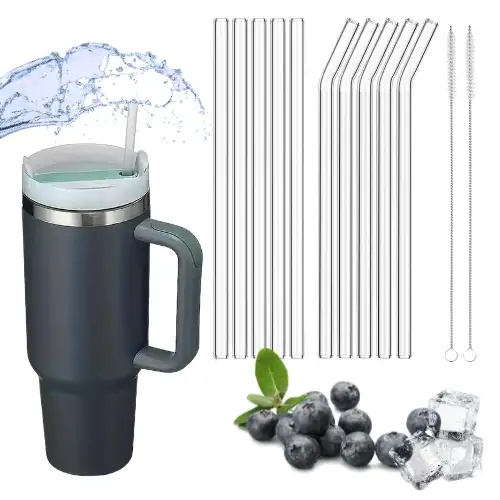 IMCHEX | Szklane słomki 10 szt. do kubka termicznego dwa rodzaje + 2 czyściki / komplet 12 el