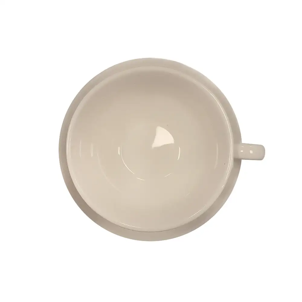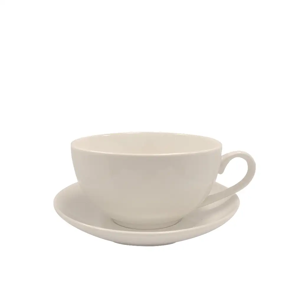 Ceramiczna filiżanka ze spodkiem o średnicy 14 cm została wykonana z ceramiki, która dobrze utrzymuje temperaturę napoju i zapewnia komfort użytkowania