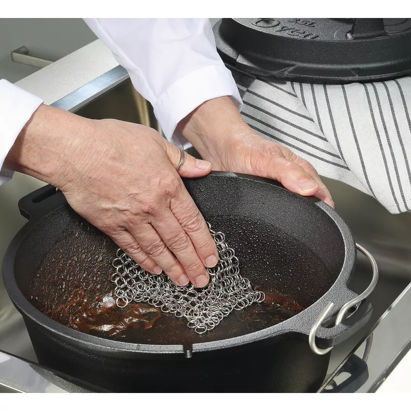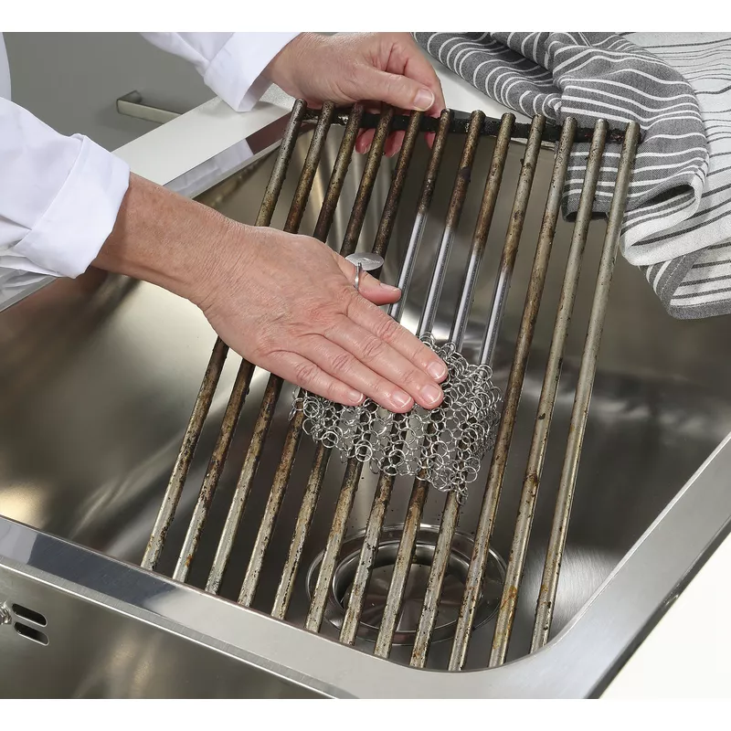 Myjka ze stalowej siatki do usuwania upartych zabrudzeń z wytrzymałych powierzchni, takich jak ruszty grillowe, żelazne patelnie czy naczynia kuchenne z nieemaliowanego żeliwa