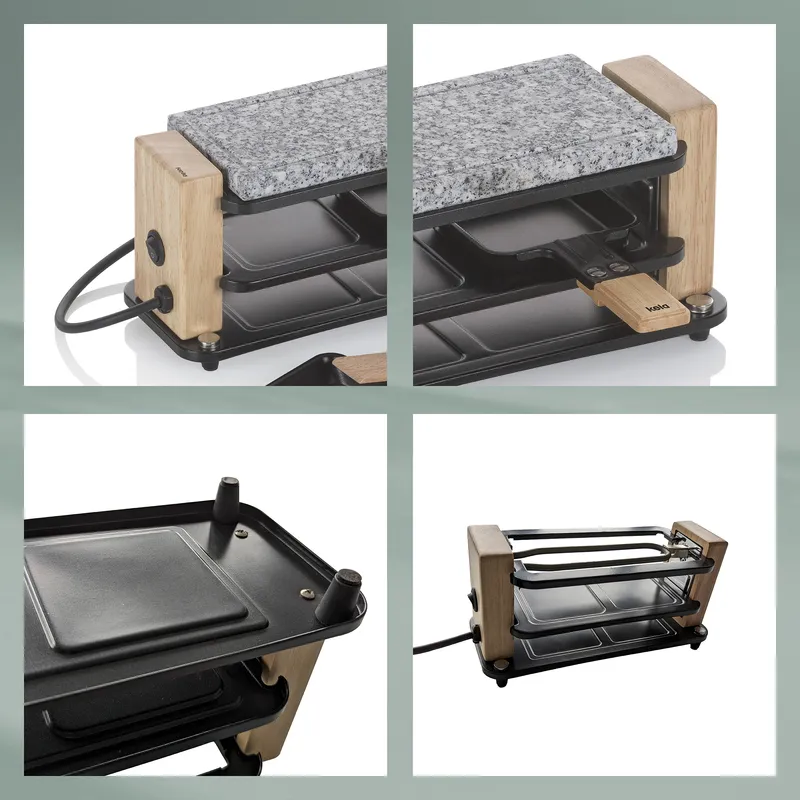 KELA | Bedretto | raclette/grill stołowy, dla 2 os., granit/stal/drewno, 27 x 11 x 13 cm