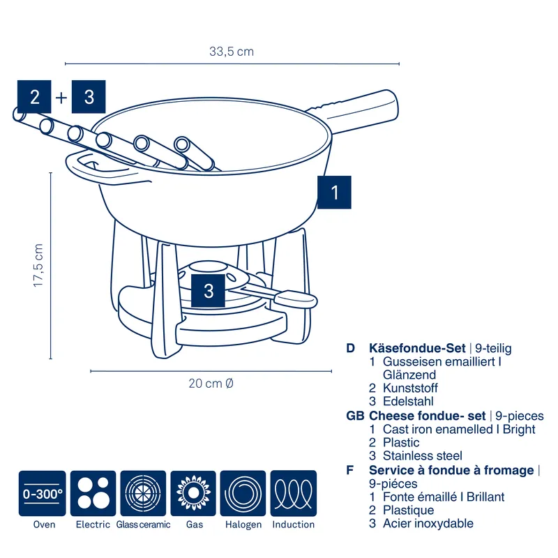 • Zestaw do fondue serowego idealny dla sześciu osób