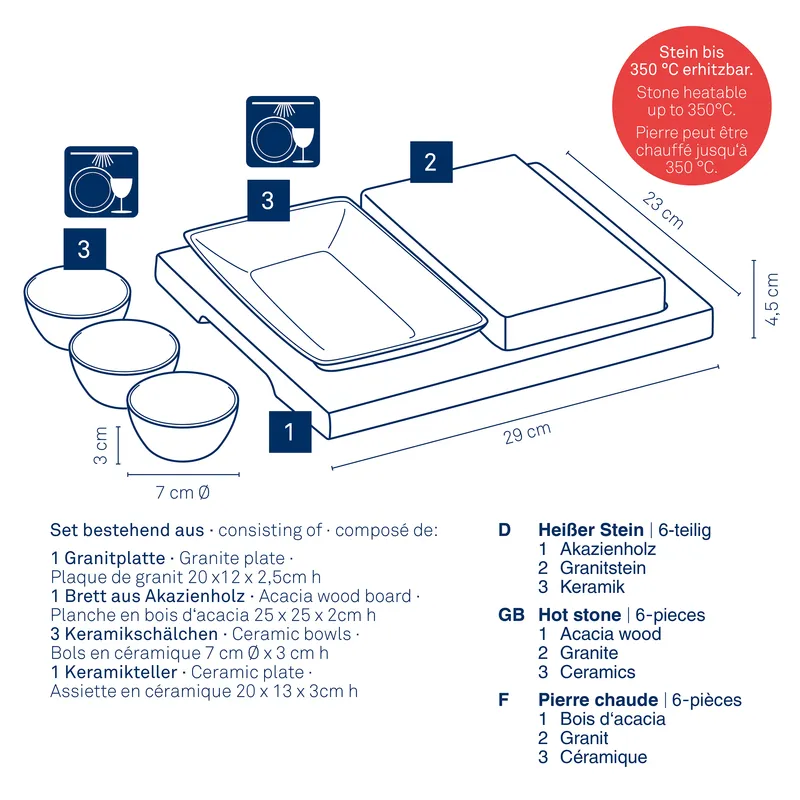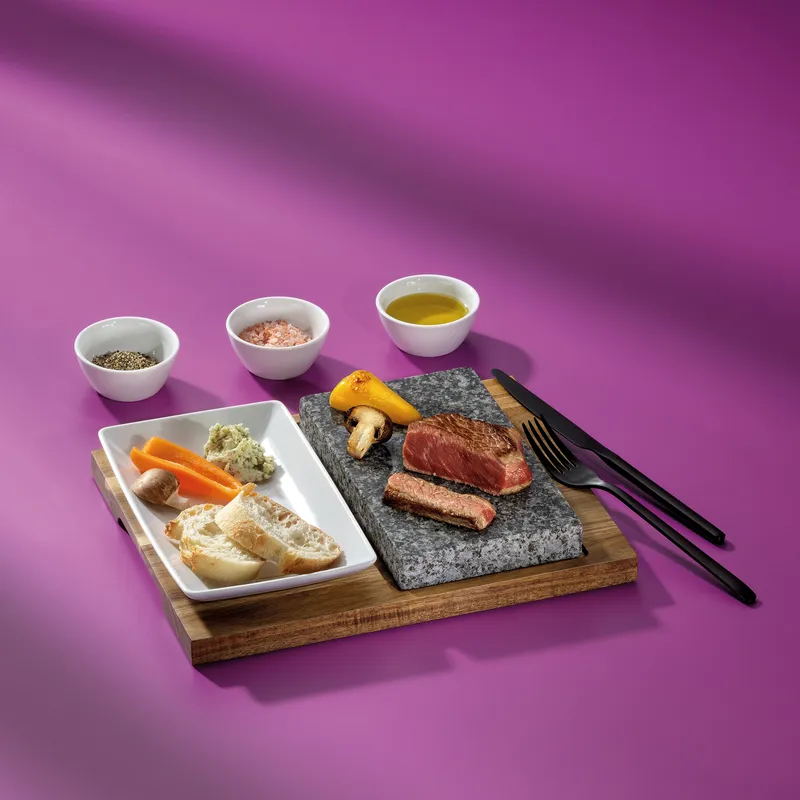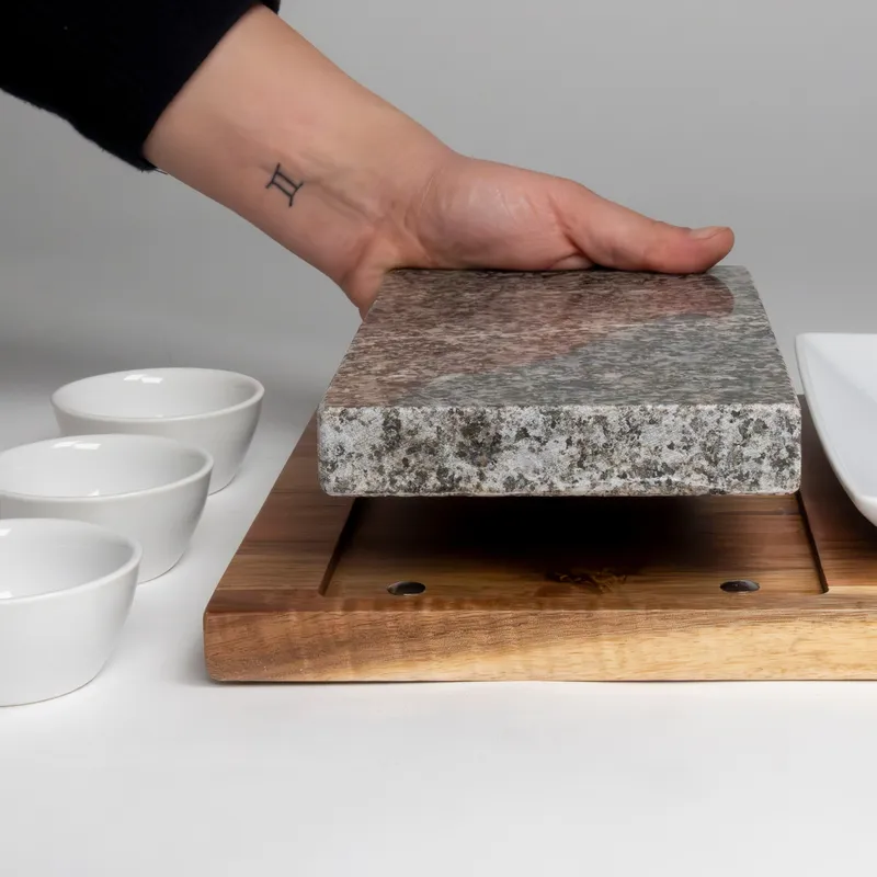 • Zestaw do serwowania z funkcją smażenia na kamieniu, idealny do mięs, krewetek i warzyw