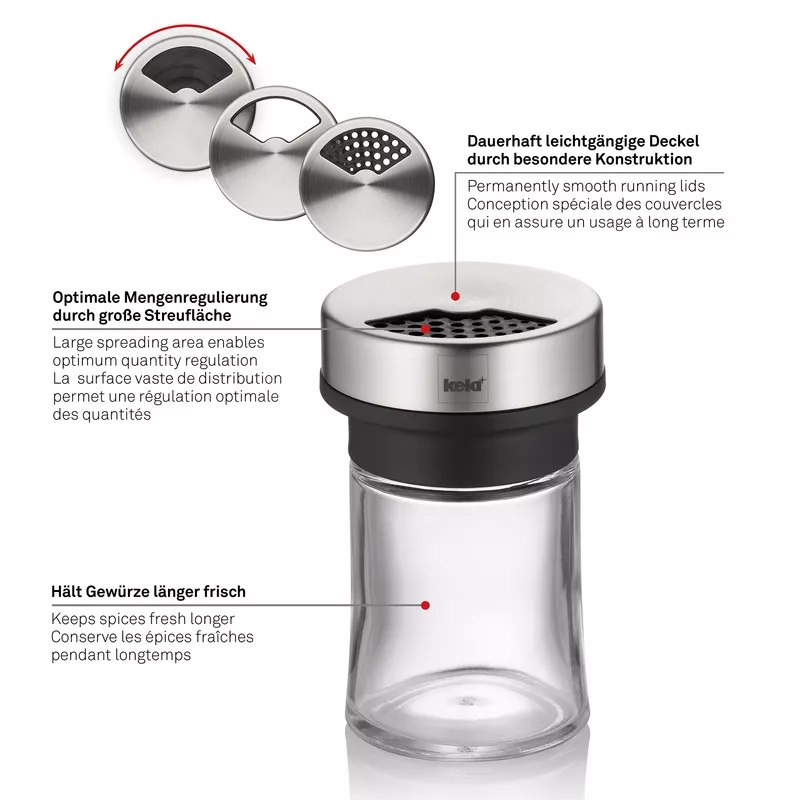 KELA | Miko | dozownik do przypraw, szkło/stal nierdzewna, 0,07 l, śred. 6 x 9,5 cm