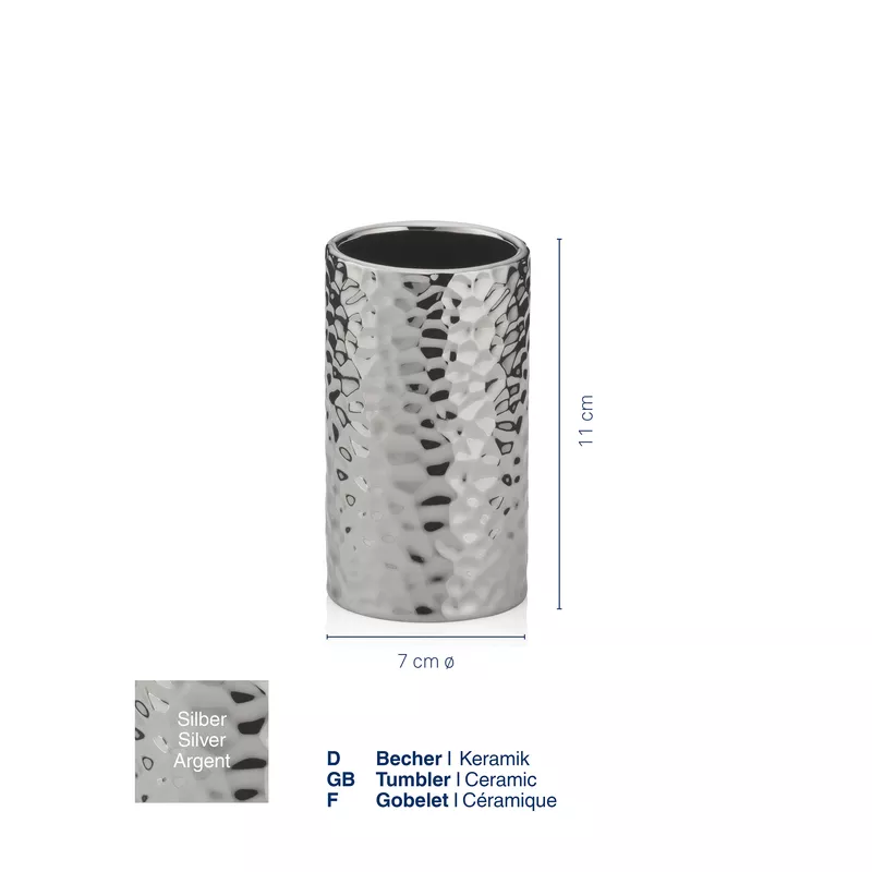 • Elegancki kubek łazienkowy inspirowany wyglądem młotkowanego srebra