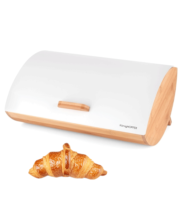 KÖNIGHOFFER COSMIC Chlebak biały z otwieraną pokrywą 35 cm / drewno bambusowe