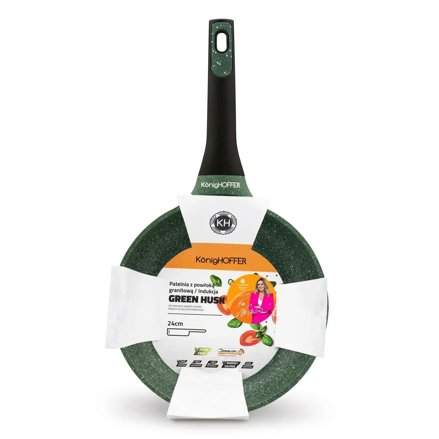 KönigHOFFER GREEN HUSK Patelnia granitowa 24 cm + pokrywka uniwersalna TADAR / indukcja