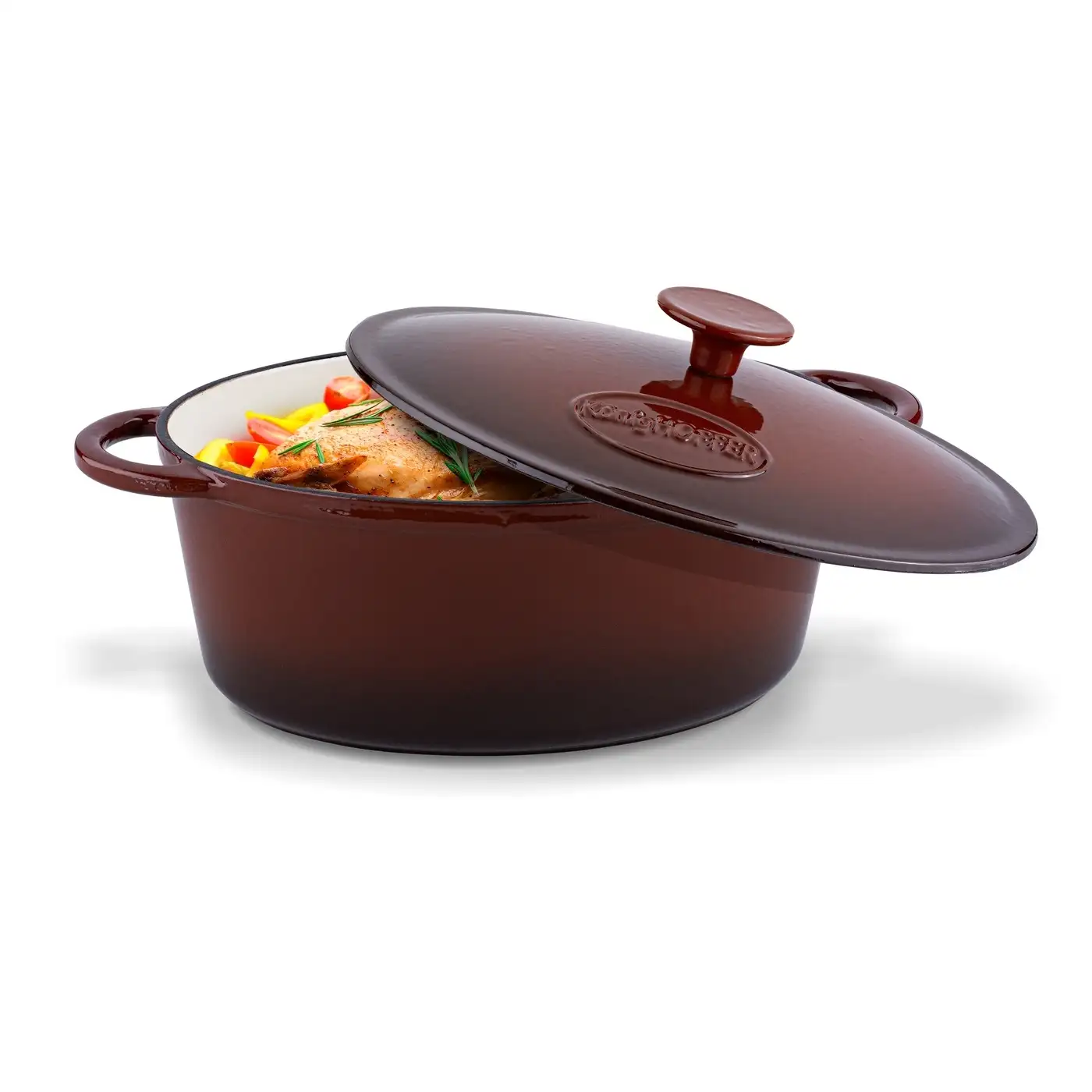 Powierzchnia żeliwna idealnie sprawdza się do pieczenia mięs, smażenia konfitur i powideł, gotowania zup oraz wszystkich innych potraw, które wymagają wolnego ognia