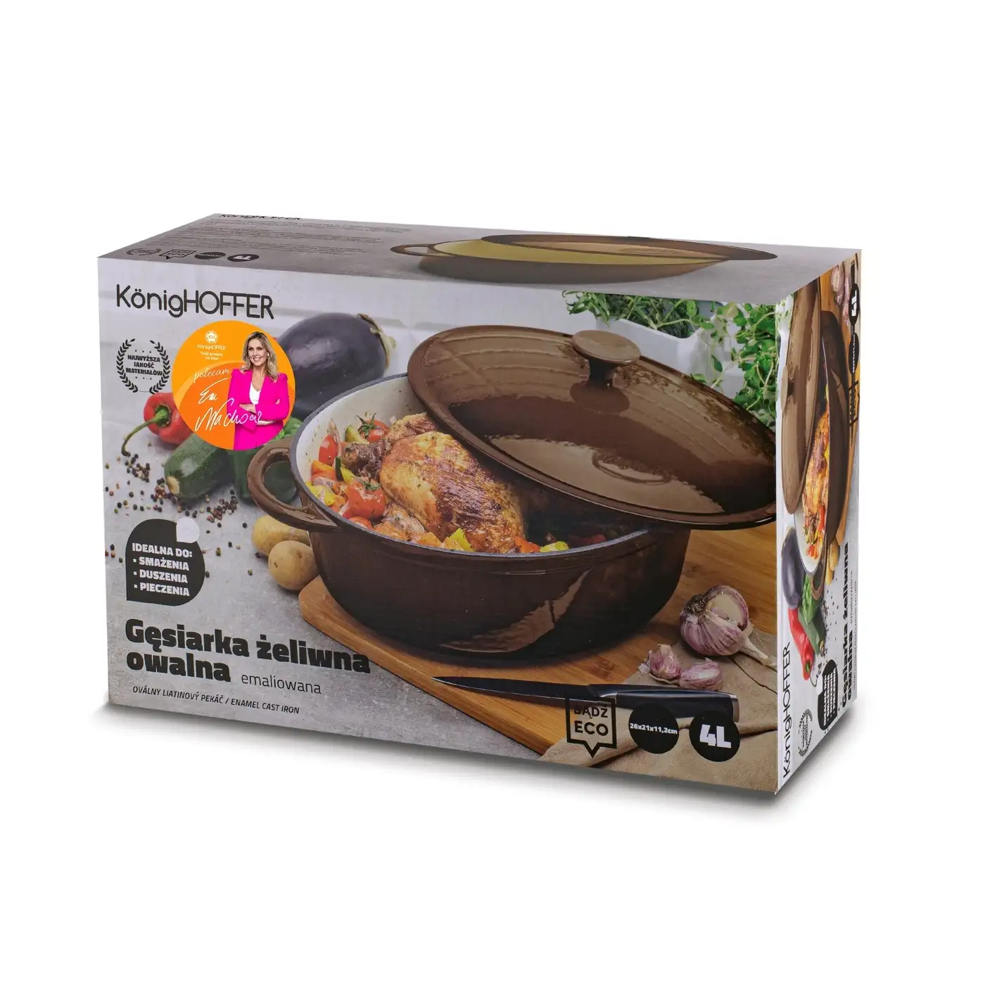 Doskonale sprawdzi się do pieczenia, duszenia i smażenia