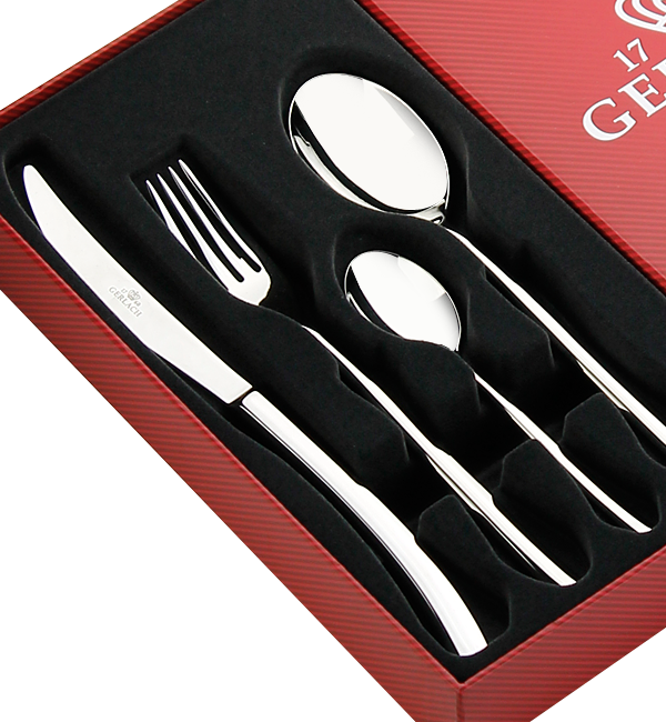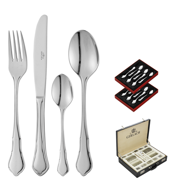 Jeśli chodzi o klasyczne zestawy sztućców, warto zwrócić uwagę na przykład na zestaw Gerlach Barok (dla 12 osób) składający się z 80 elementów, zapakowanych w elegancką walizkę: