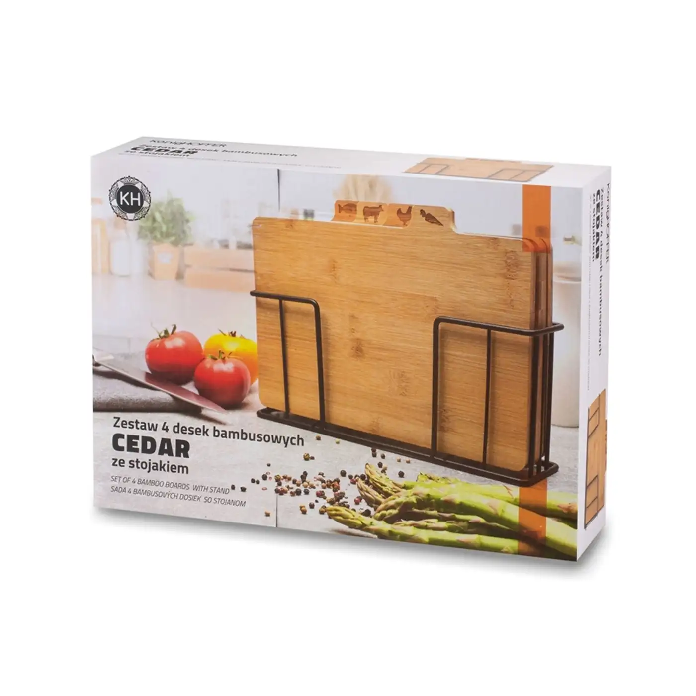 KONIGHOFFER CEDAR Zestaw 4 desek do krojenia ze stojakiem 29x21x7 cm / drewno bambusowe