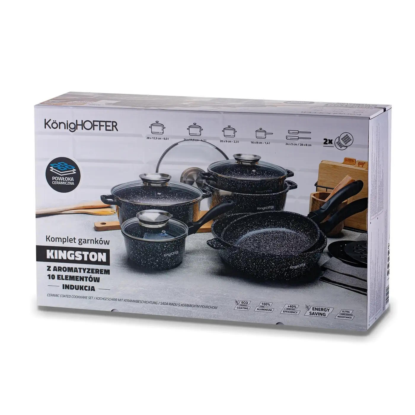 KONIGHOFFER KINGSTONE Zestaw garnków z pokrywkami 10 elementów + 2 podkładki / aluminium