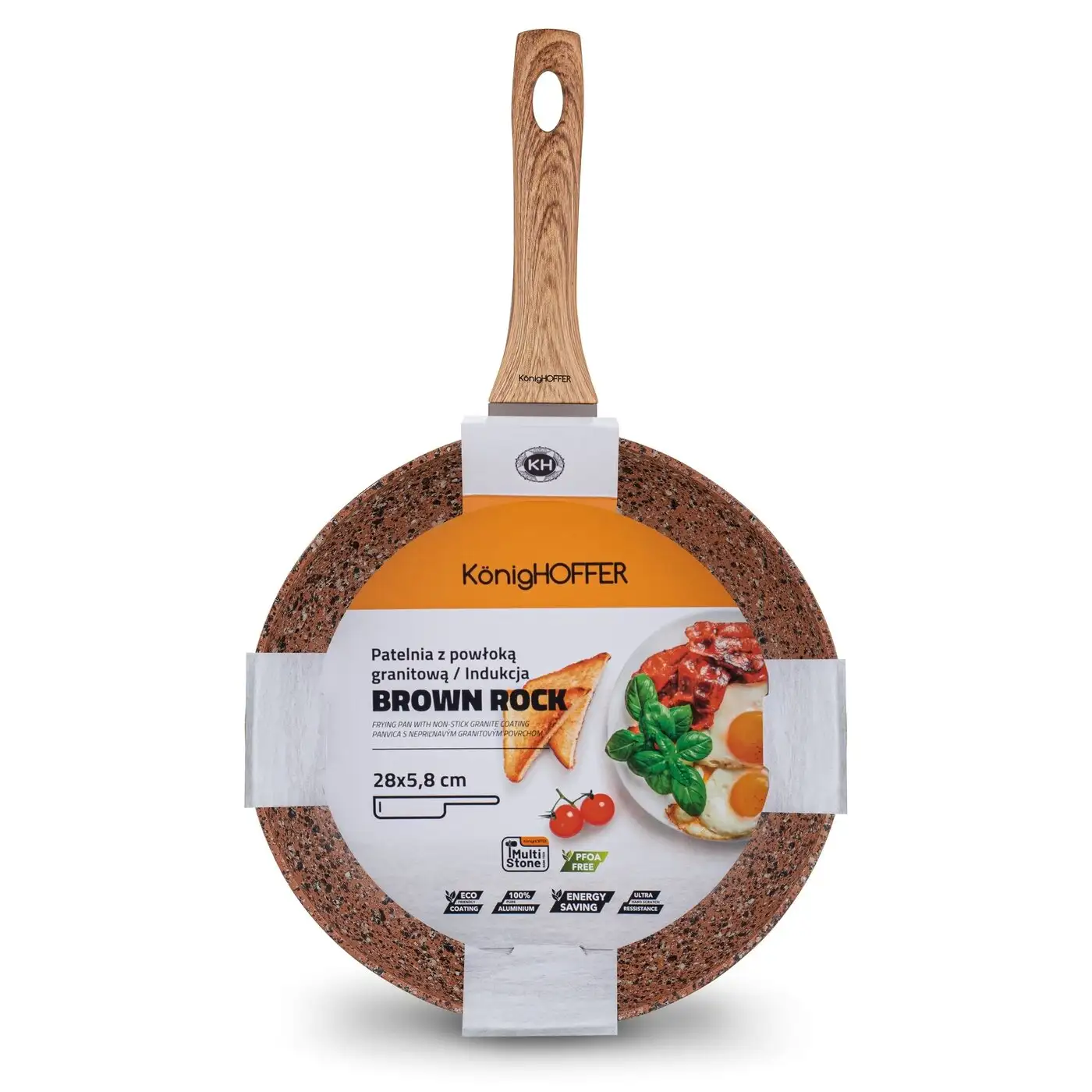 • Patelnia wykonana z wysokiej jakości granitu, co gwarantuje trwałość i odporność na zarysowania