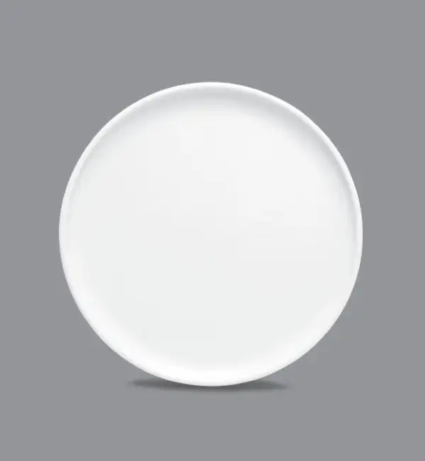 Minimalistyczny, idealnie okrągły talerz z delikatnie uniesionym rantem i subtelnym, matowo-satynowym wykończeniem nadaje mu nowoczesny, elegancki charakter