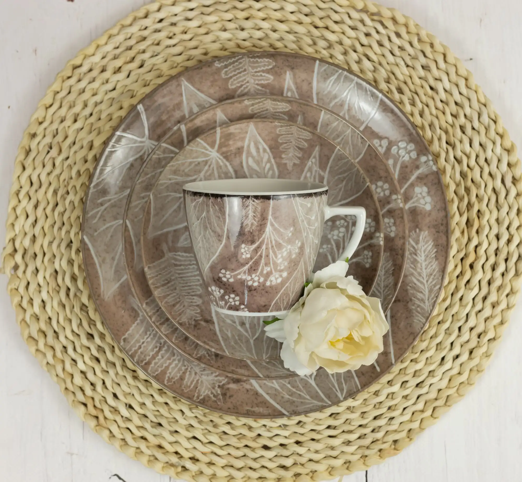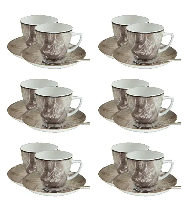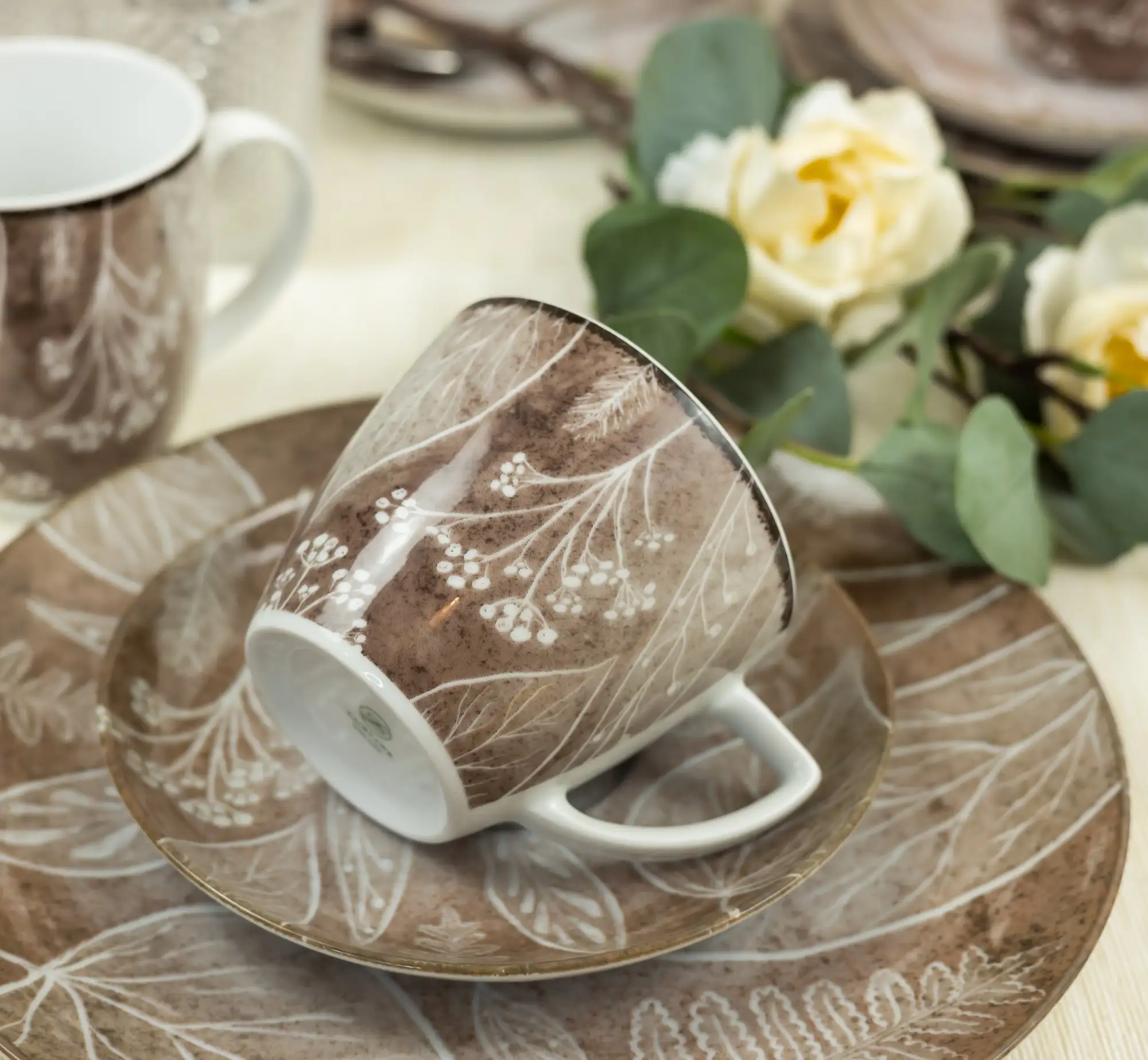 LUBIANA BOSS KERAJET DIGITAL PRINTING | 9075B KJ LIŚCIE | 12x Filiżanka 350 ml + spodek 17,5 cm | brązowy