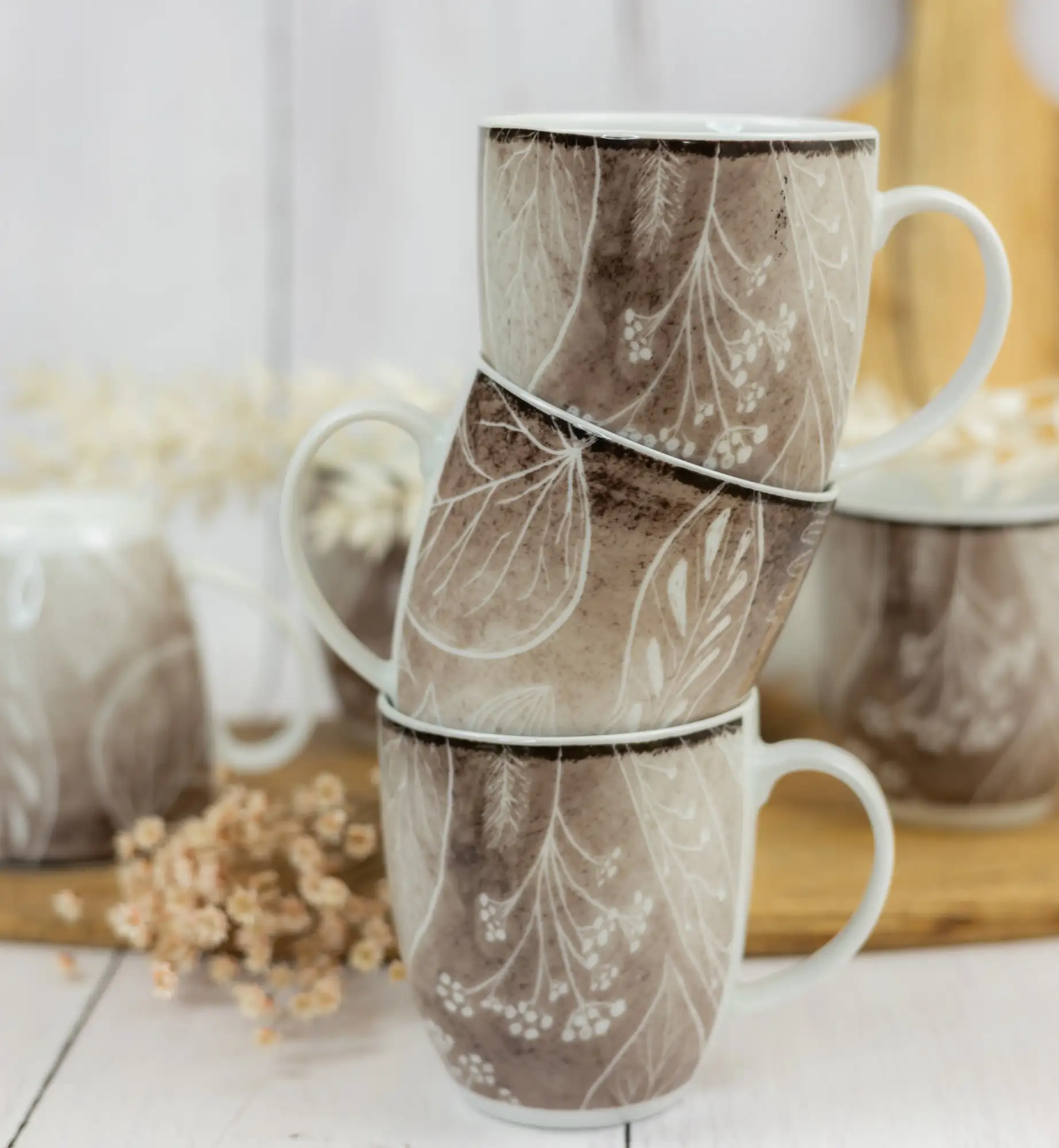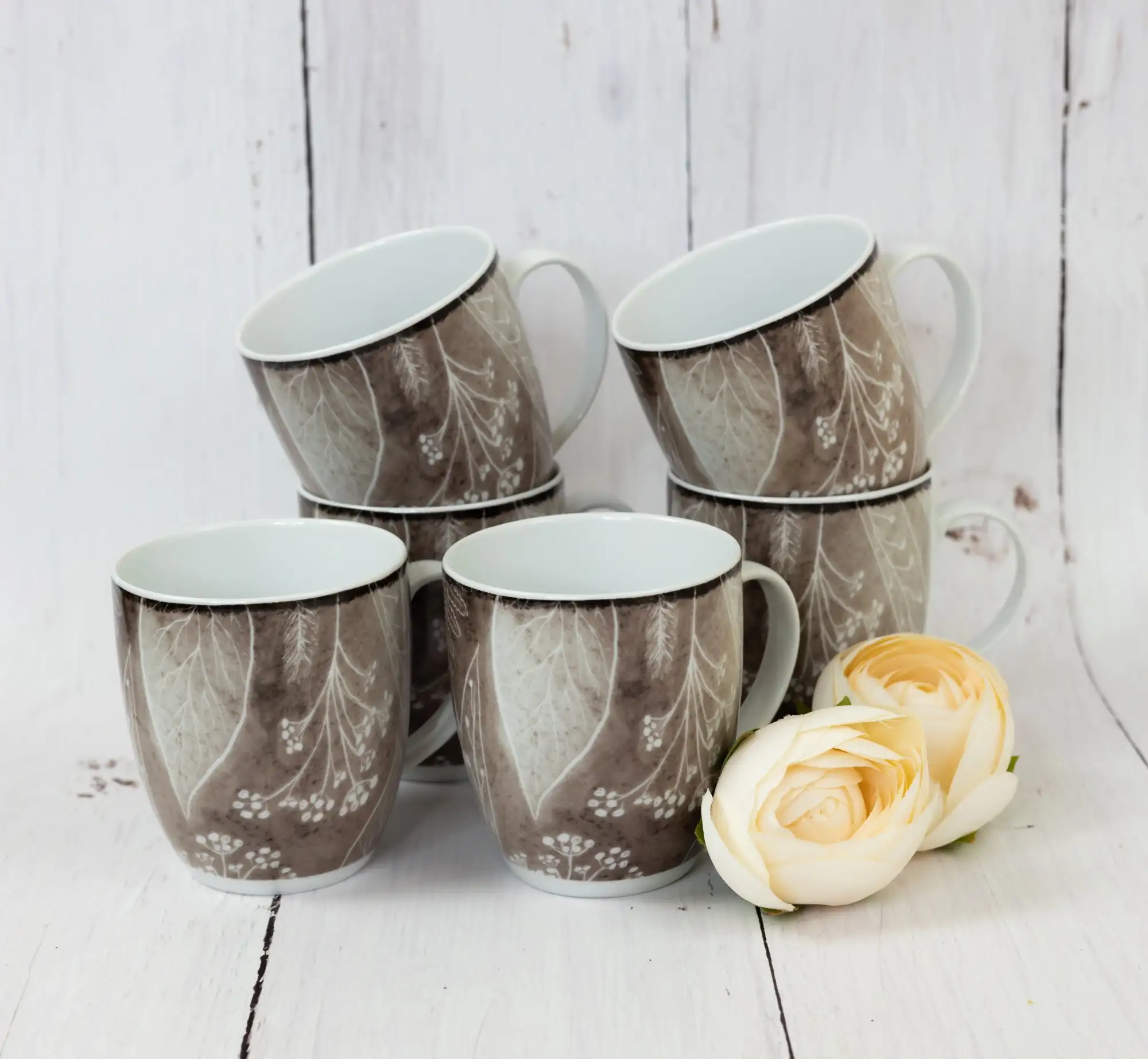 LUBIANA BOSS KERAJET DIGITAL PRINTING | 9075B KJ LIŚCIE | 6x Kubek 380 ml | brązowy