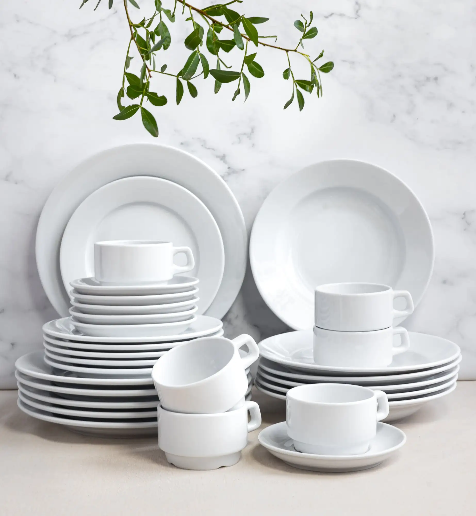 LUBIANA CORONA Serwis obiadowo - kawowy 90 el dla 18 osób | biała porcelana