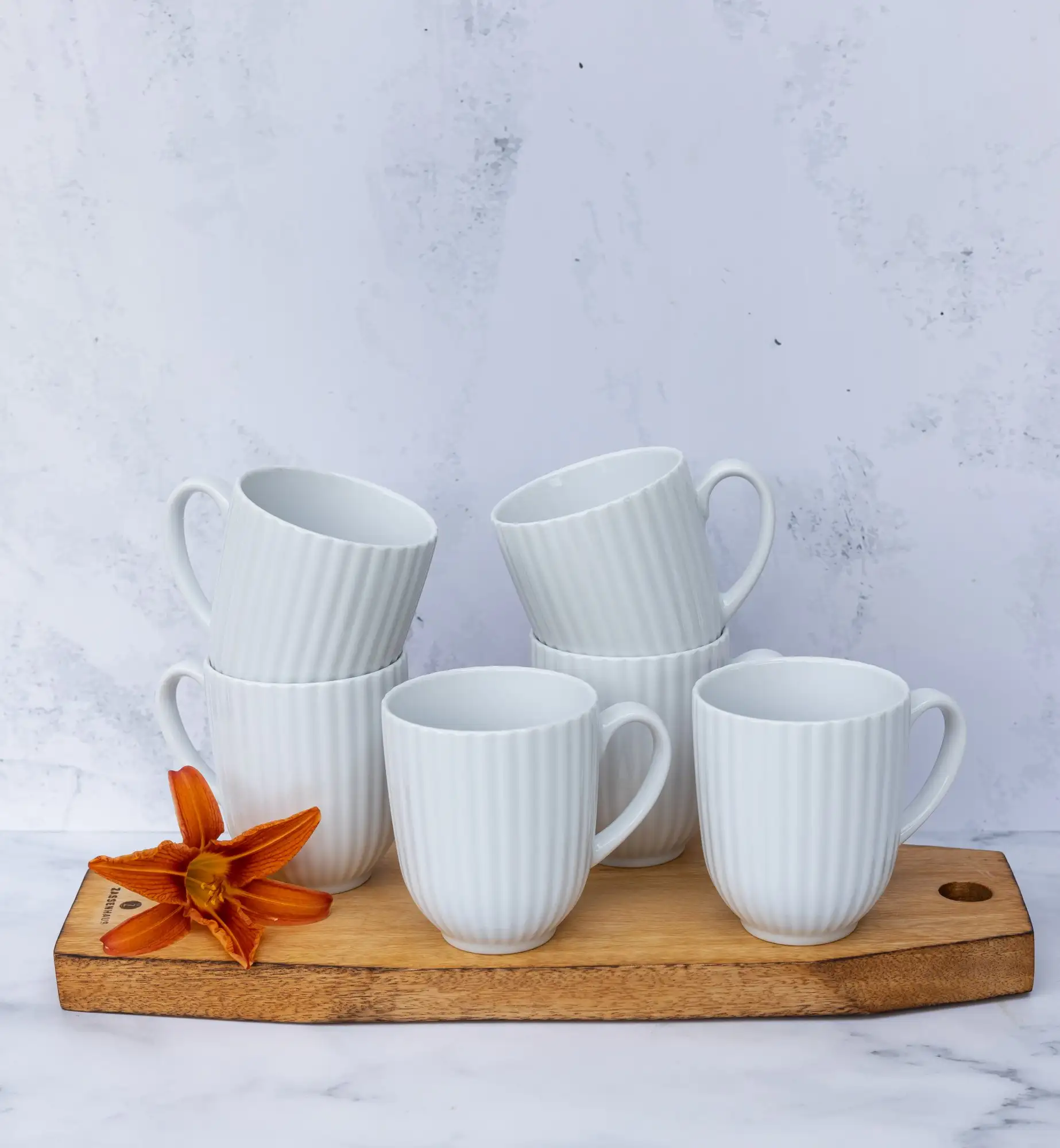 LUBIANA DAISY Komplet 18 kubków 350 ml | biała porcelana