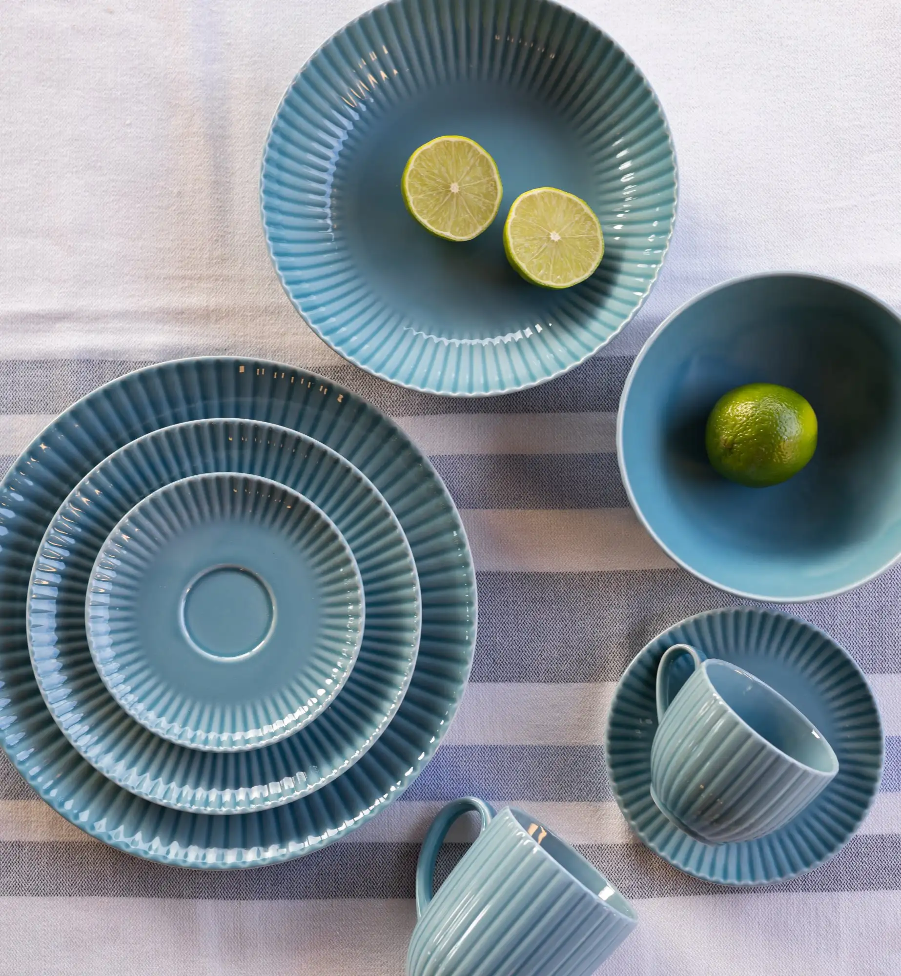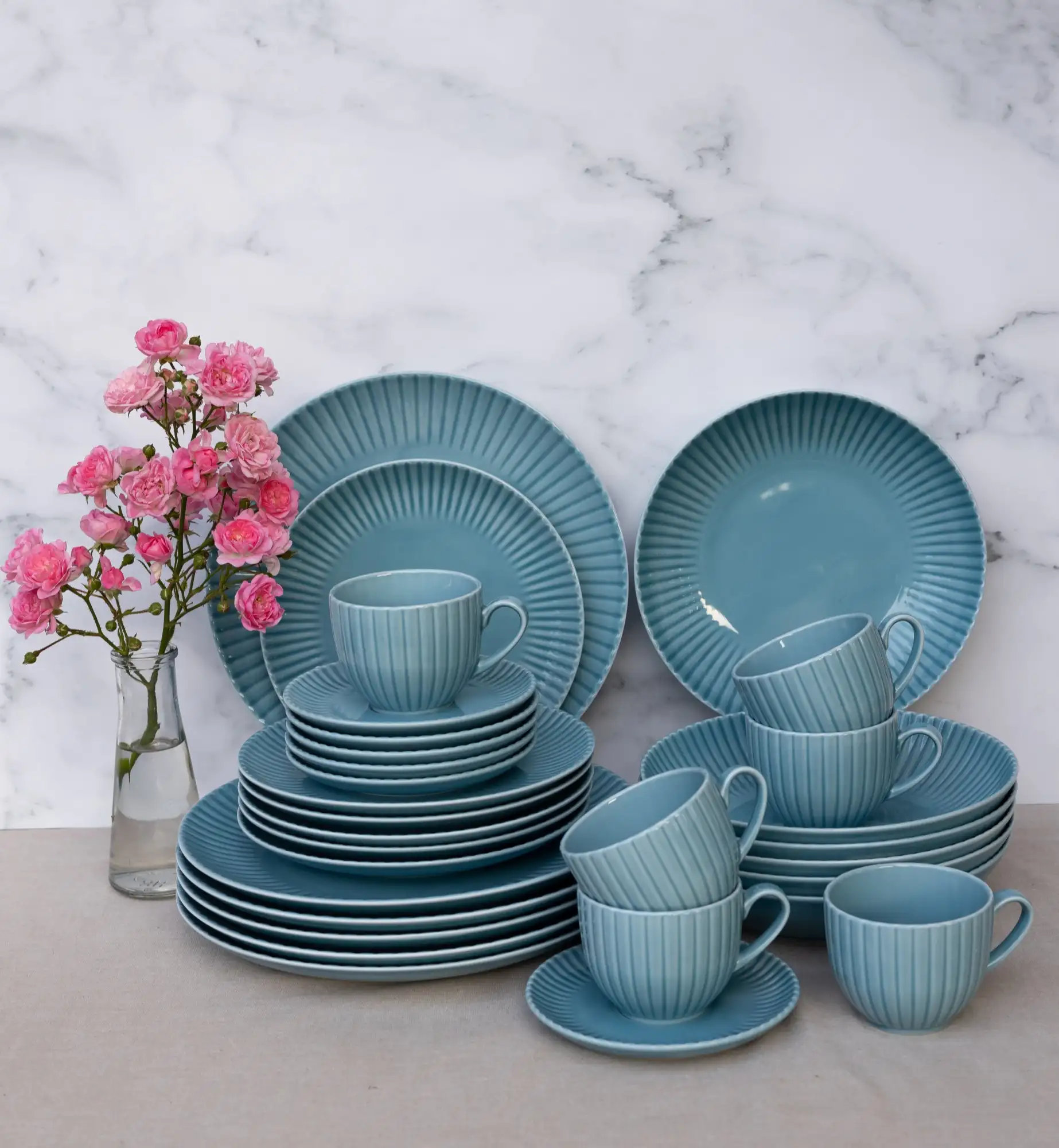 LUBIANA DAISY WATERFALL K6 Serwis obiadowo - kawowy 18 osób / 90 elementów / turkusowy