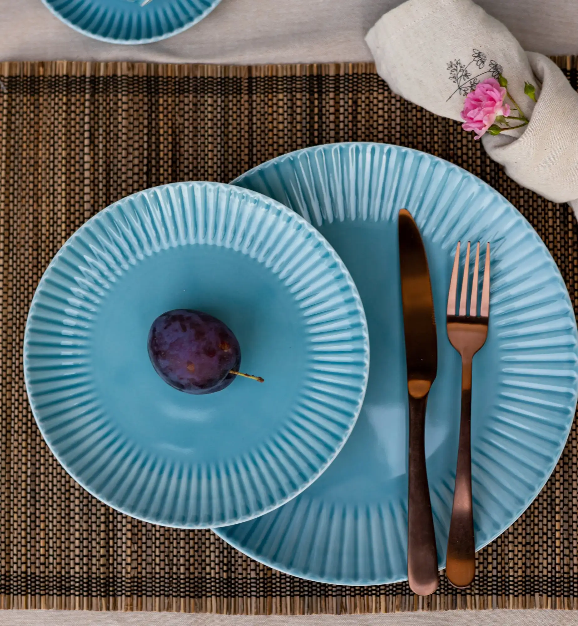 LUBIANA DAISY WATERFALL K6 Serwis obiadowy 6 osób / 18 elementów / turkusowy