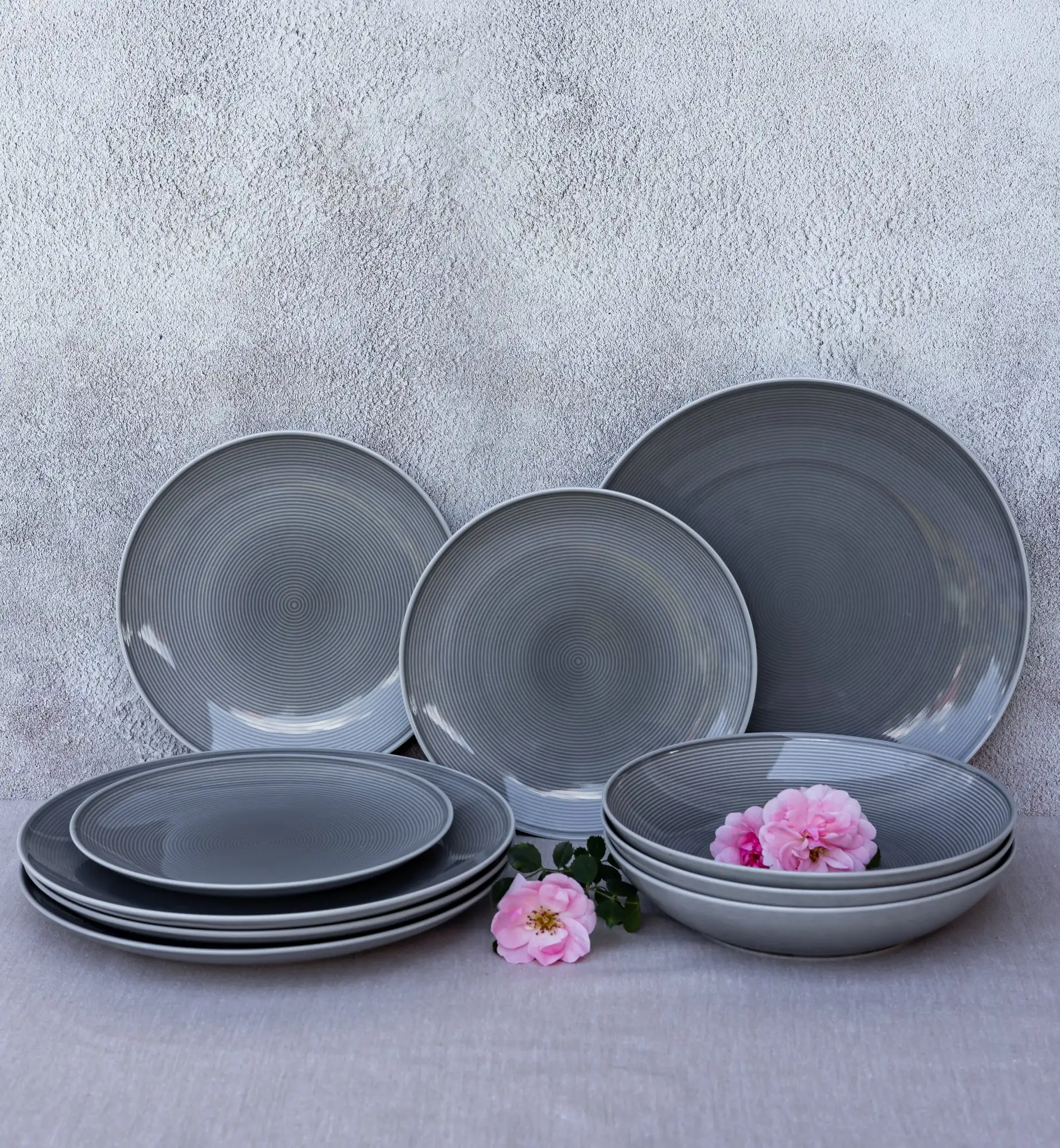 LUBIANA ETO MODERN K1 Serwis obiadowy szary 36 el / 12 osób / porcelana ręcznie malowana