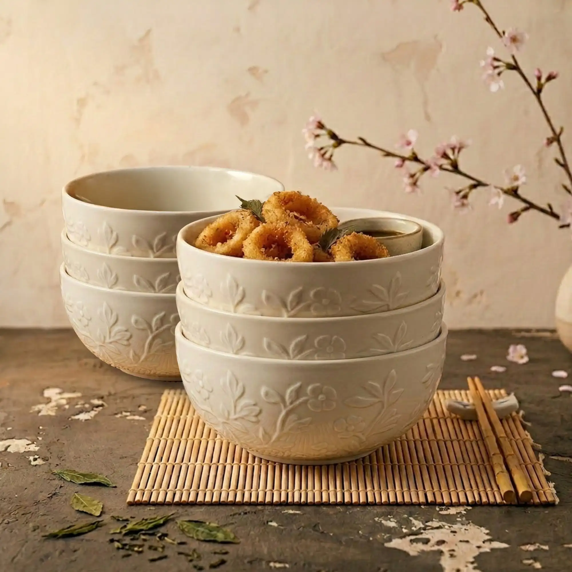 LUBIANA HANAMI KE KREMOWY Miska 16 cm x 6 sztuk / zdobiona porcelana luz