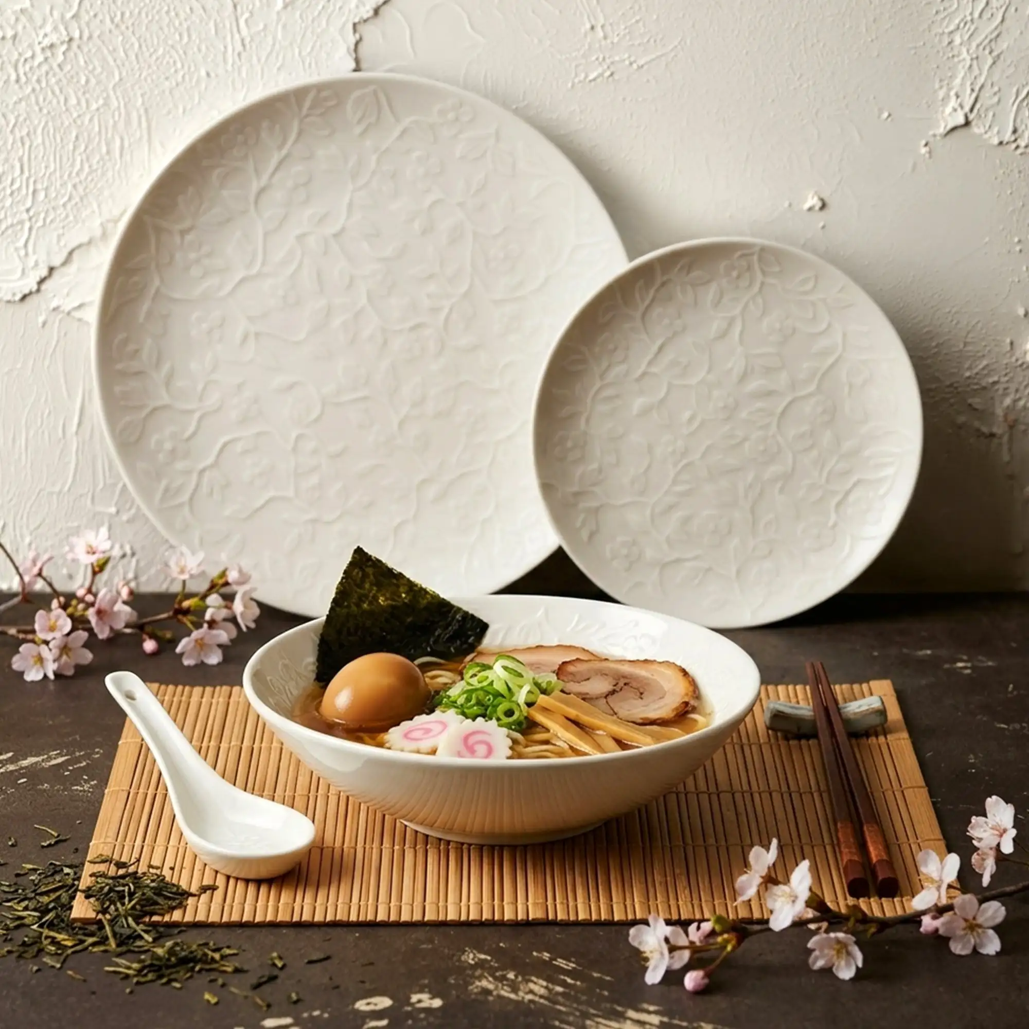 LUBIANA HANAMI KE KREMOWY Serwis obiadowy 72 el 24 os / zdobiona porcelana luz