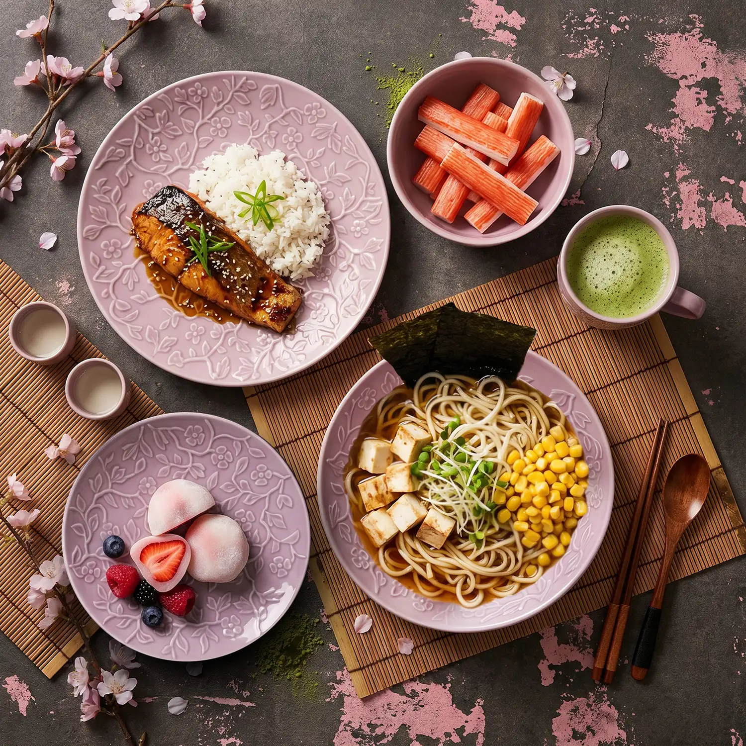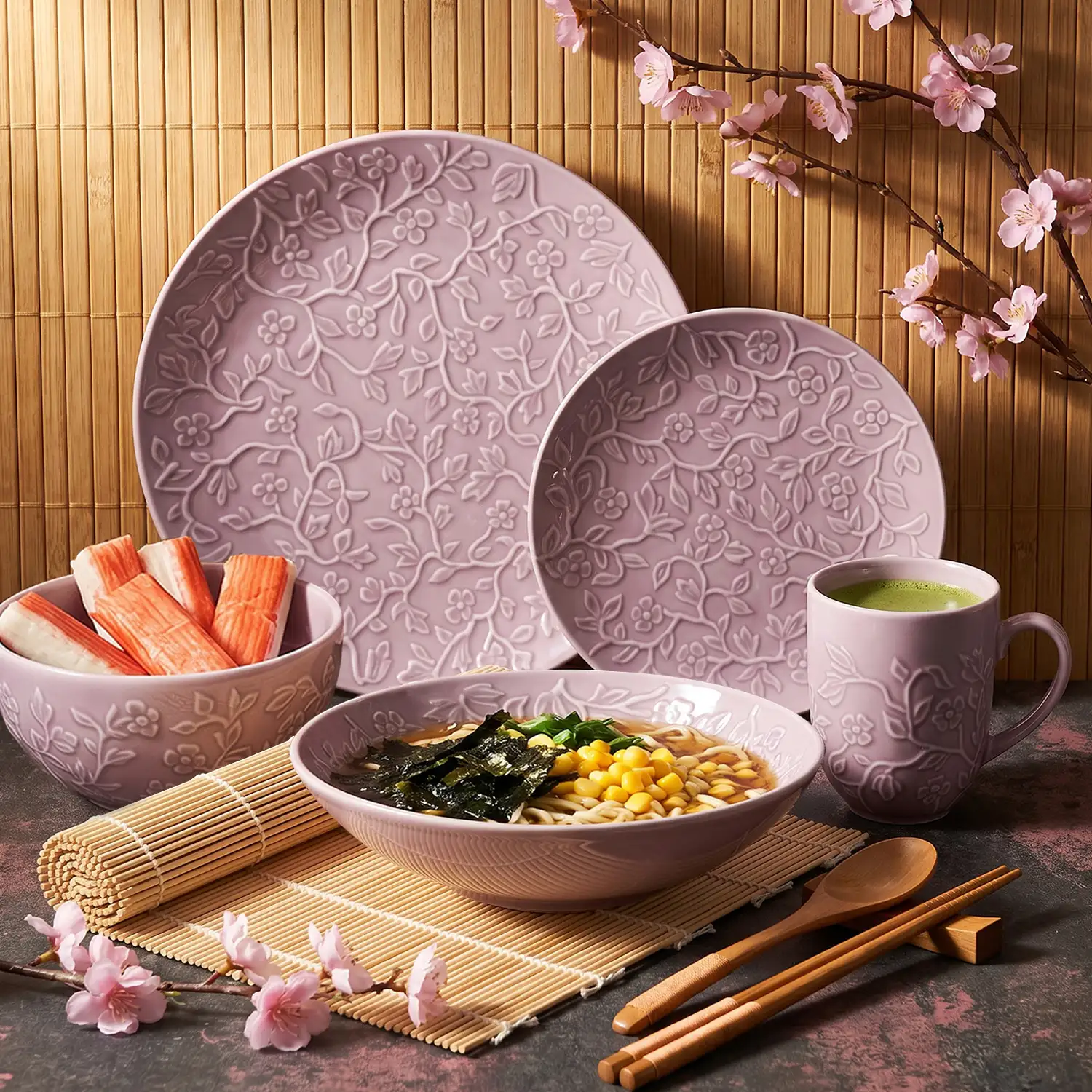 LUBIANA HANAMI KR LAWENDA Serwis obiadowy 30 el 6 os / zdobiona porcelana luz