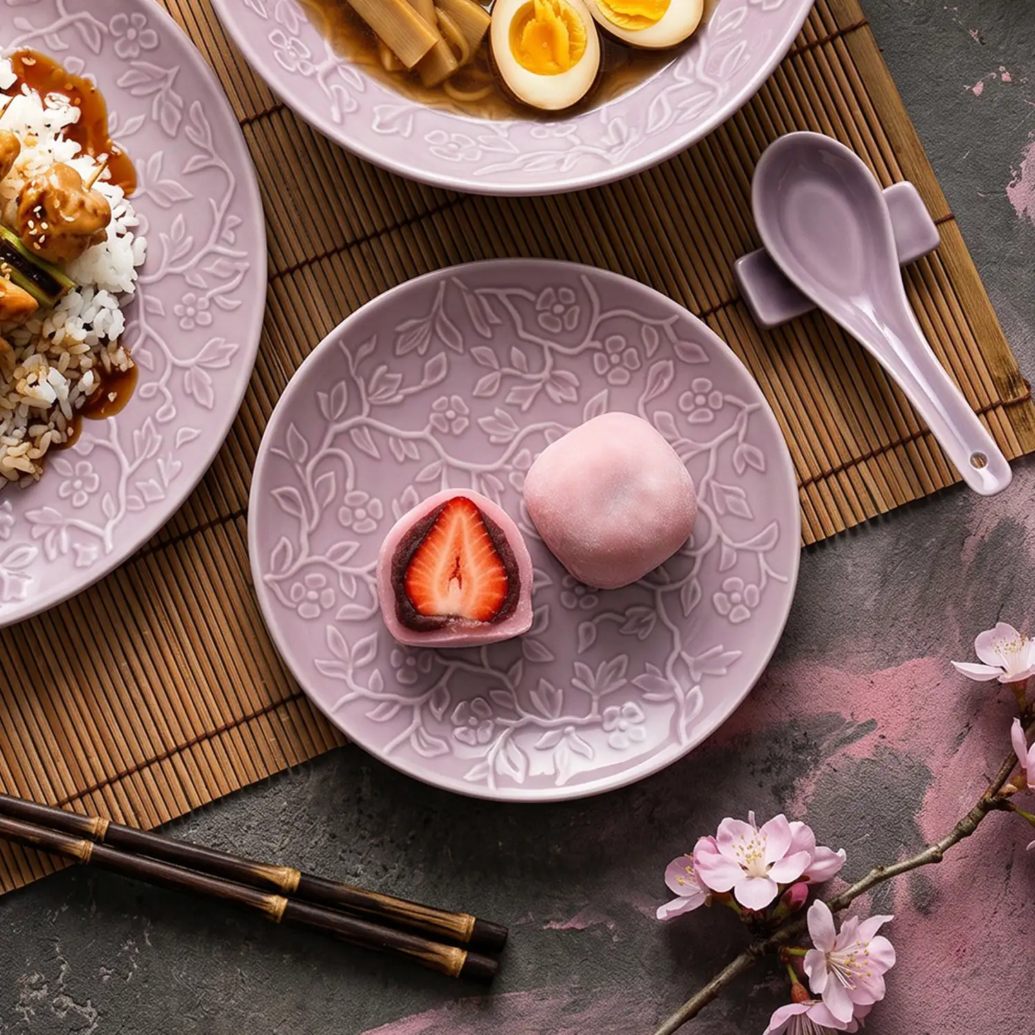 LUBIANA HANAMI KR LAWENDA Serwis obiadowy 72 el 24 os / zdobiona porcelana luz