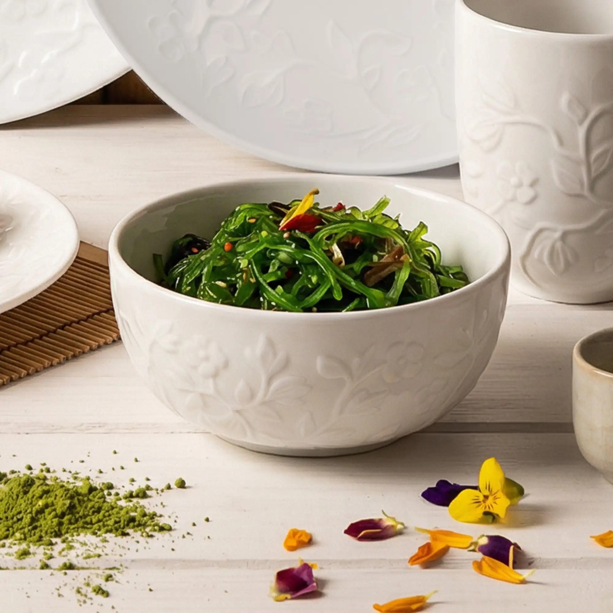 • Delikatny, roślinny relief inspirowany naturą wprowadza do porcelany wiosenną świeżość i lekkość formy