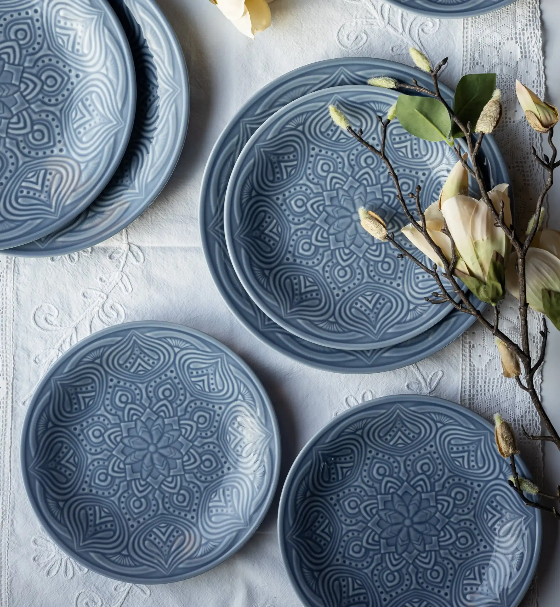 LUBIANA ORIENTAL | K9 SZARO - NIEBIESKI | Talerz obiadowy 25 cm | porcelana luz