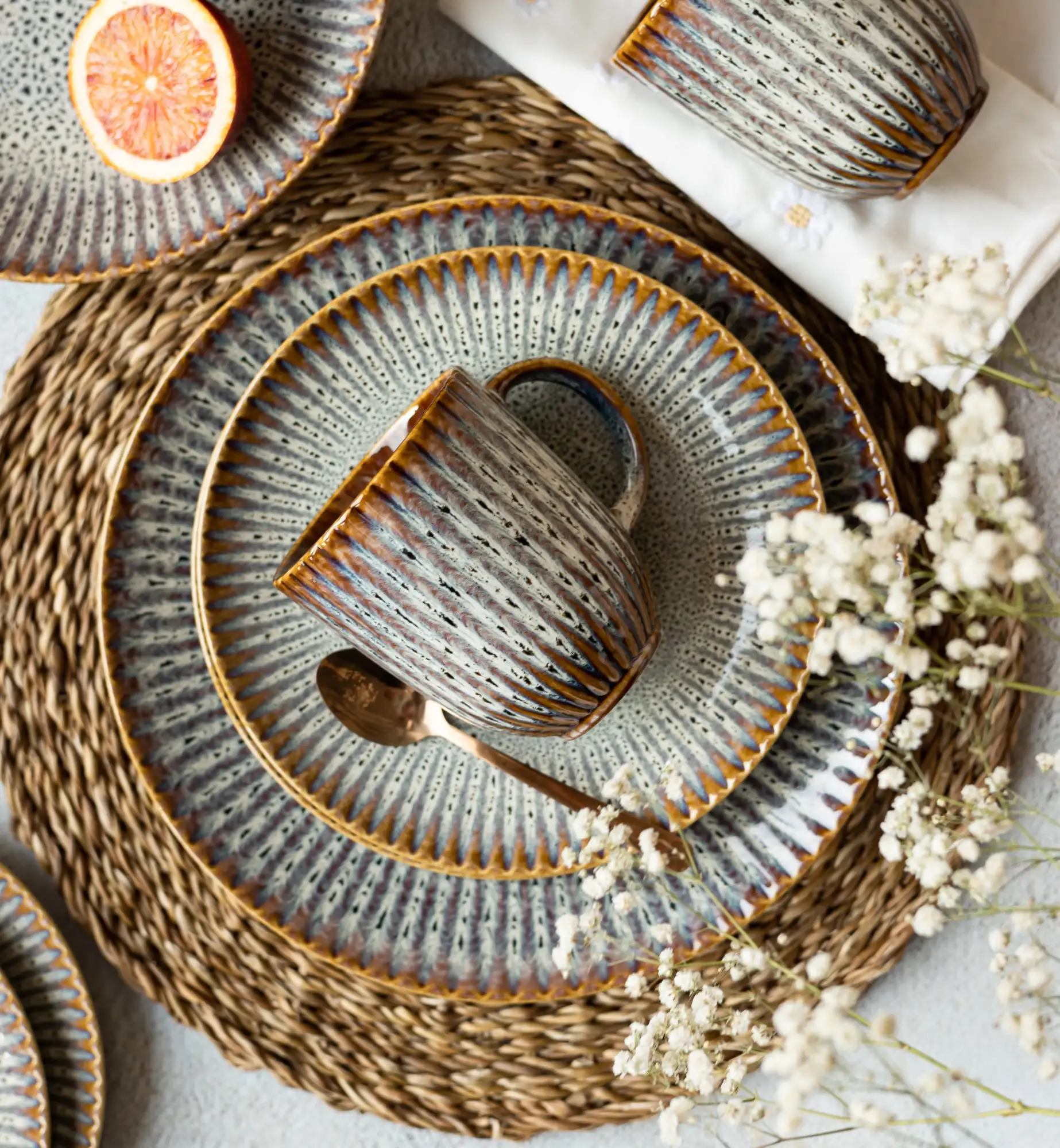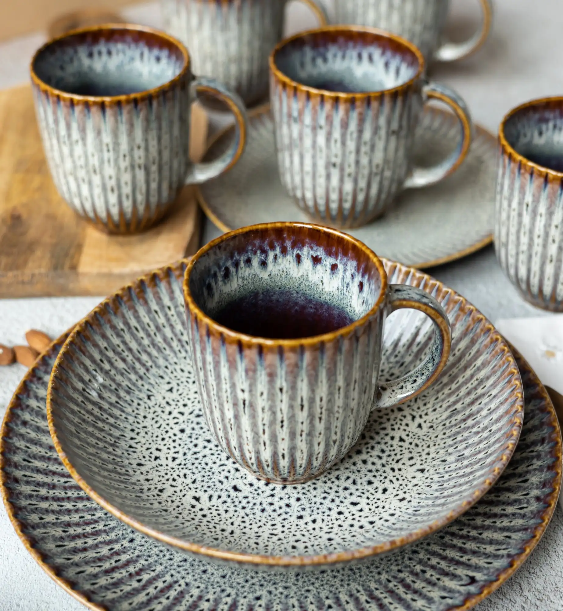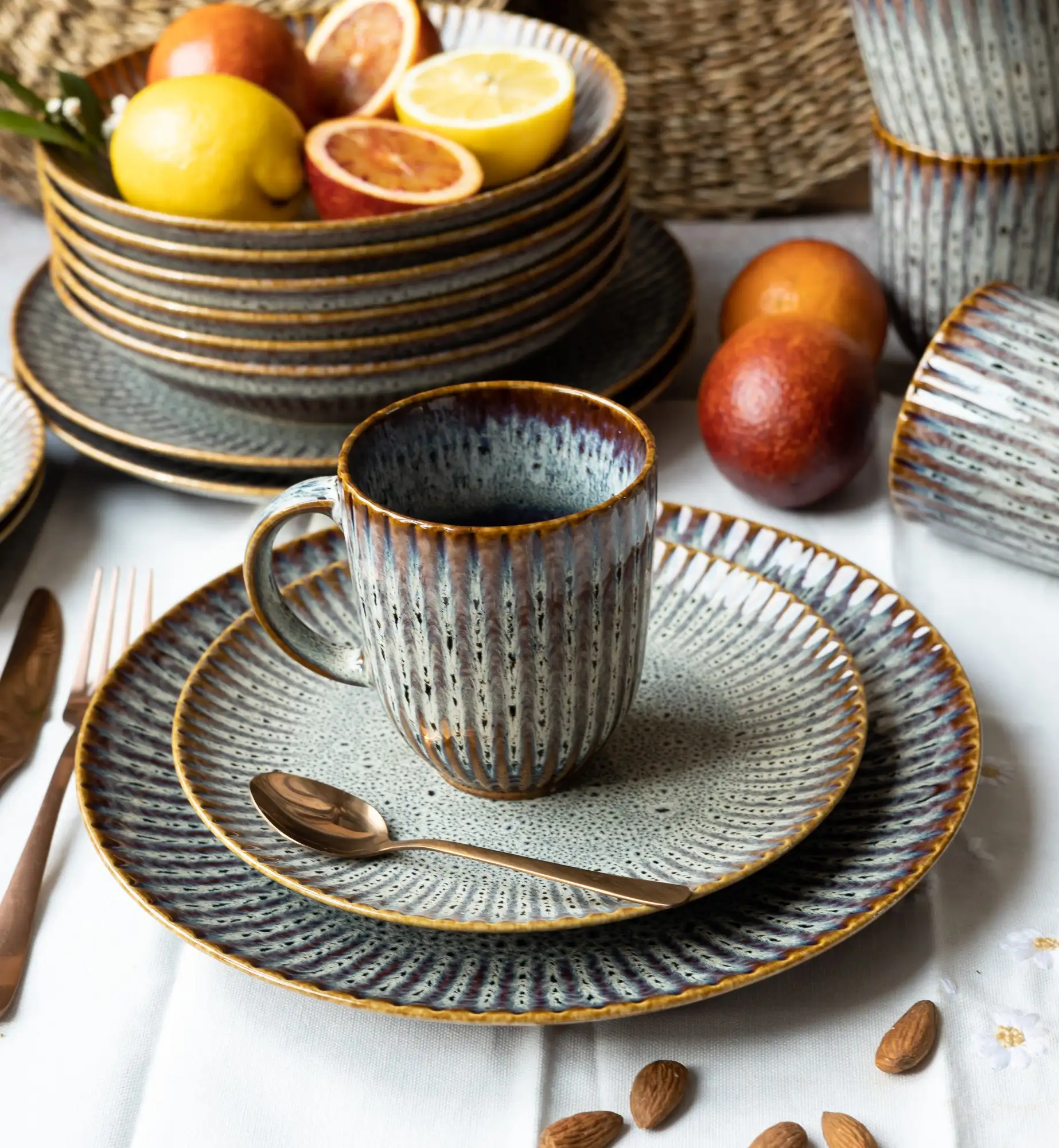 Naczynia nie są powtarzalne w swoim wykończeniu. Serwis Stoneware charakteryzuje się naturalnym zróżnicowaniem kolorów, faktur i wzorów poszczególnych elementów. Nie jest to wada produktu - nie podlega reklamacji.