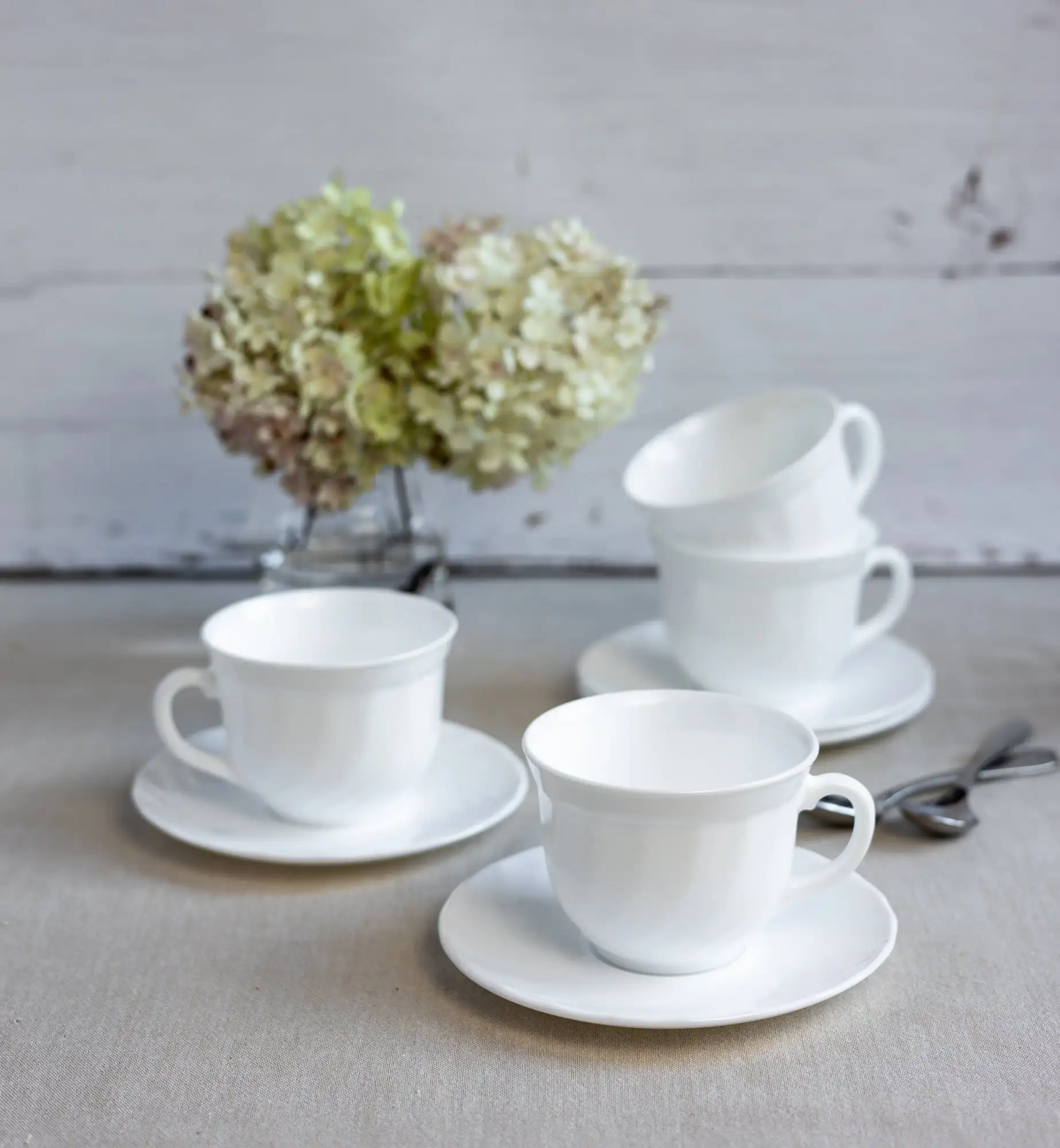 LUMINARC TRIANON Komplet 6 filiżanek 220 ml ze spodkami 14 cm| biały | szkło hartowane