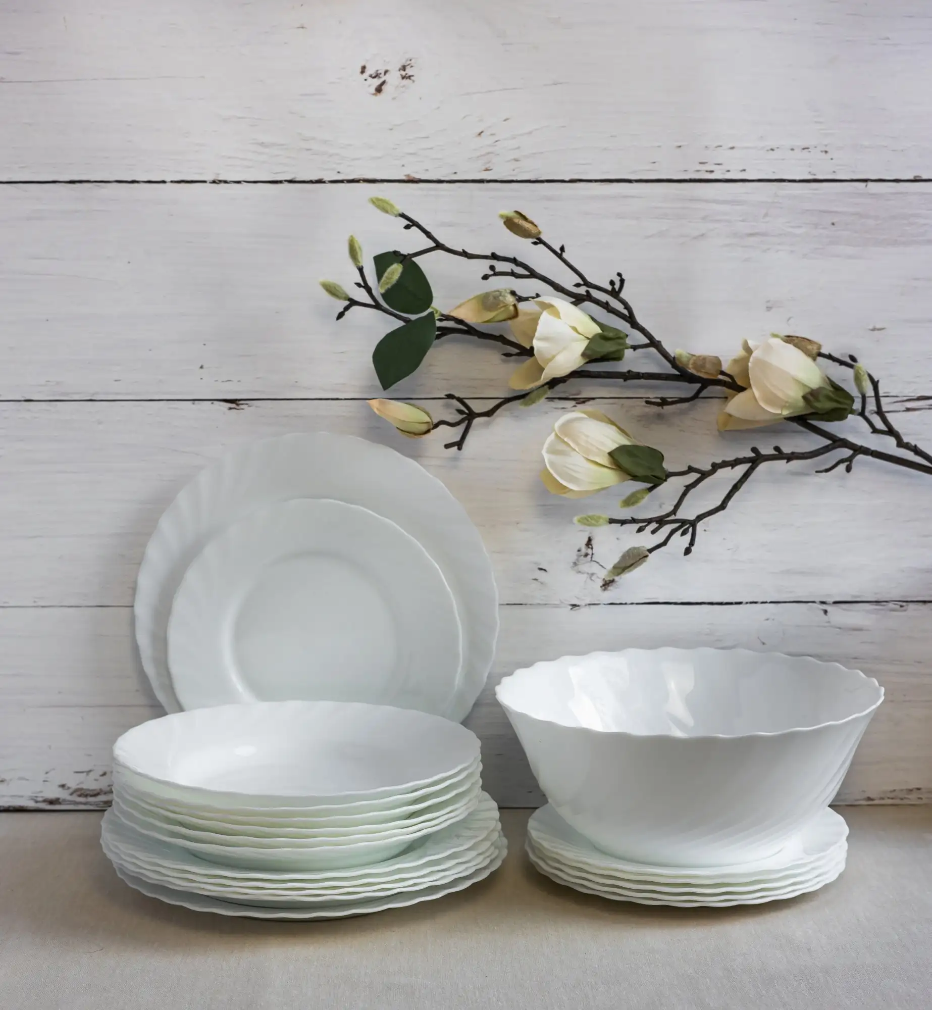 LUMINARC TRIANON WHITE OPK | Komplet obiadowy 38 el dla 12 os z salaterkami | szkło hartowane | 144