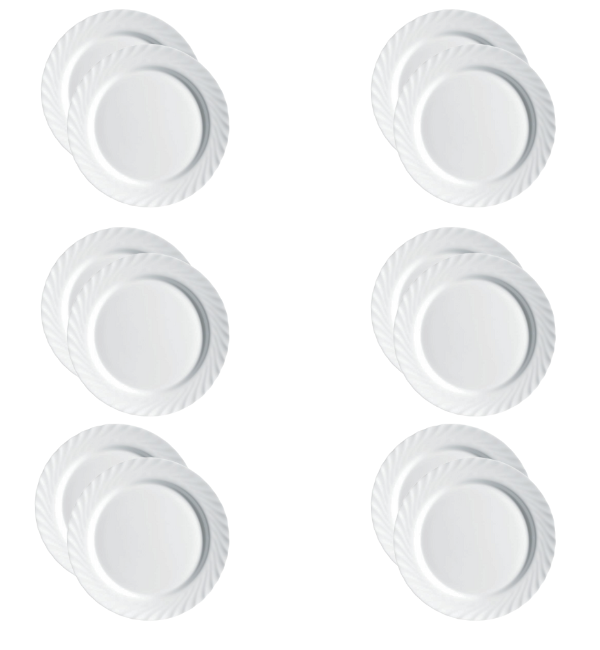 LUMINARC TRIANON WHITE Talerz obiadowy 27 cm - 12 SZT. | biały | szkło hartowane | 68977/V8353
