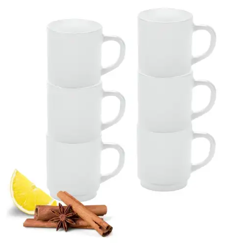 LUMINARC ZELIE Kubek 290 ml komplet 6 sztuk sztaplowany biały / szkło hartowane