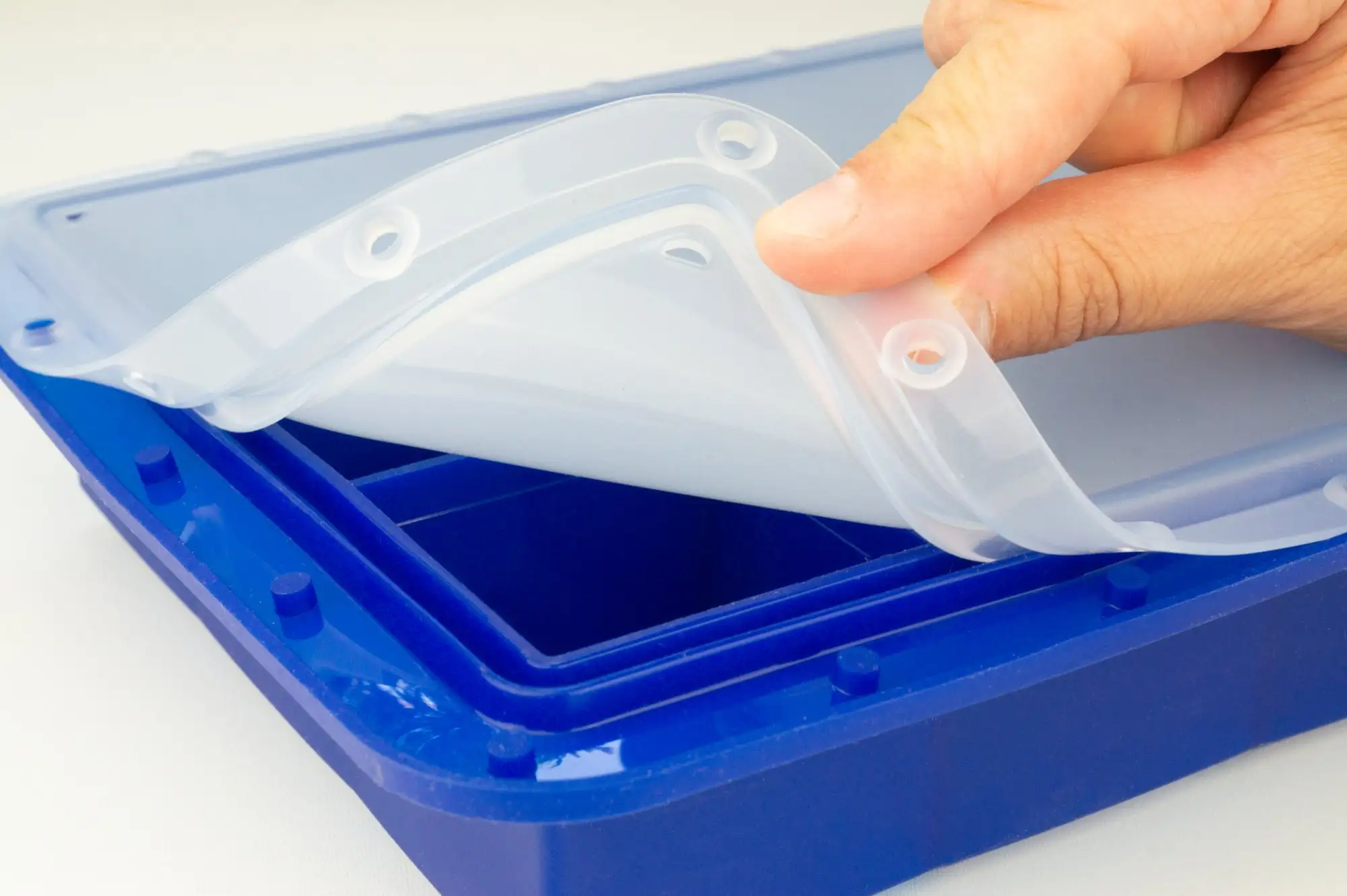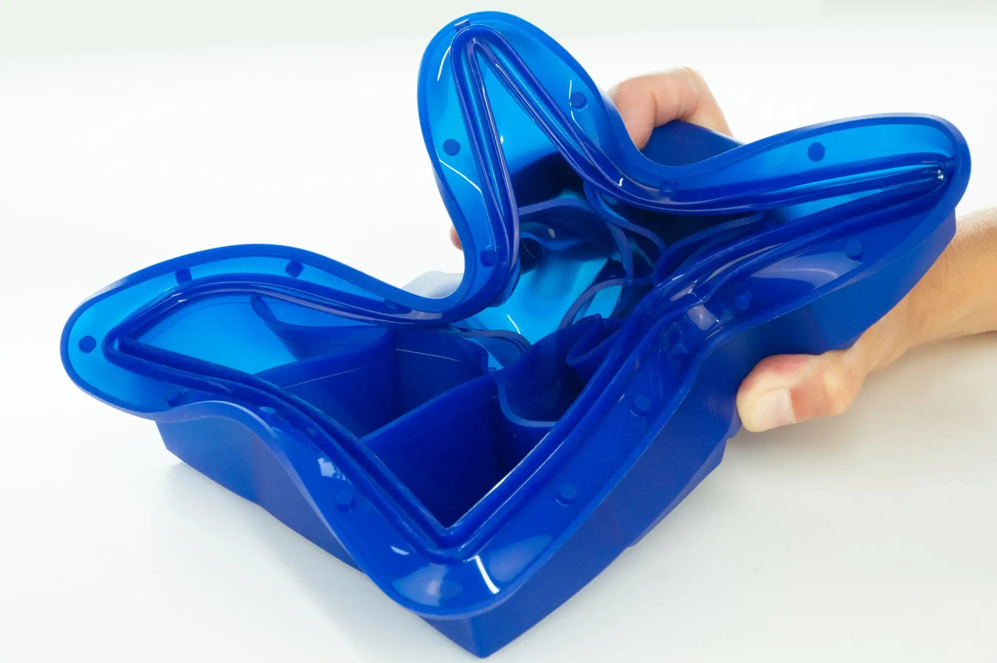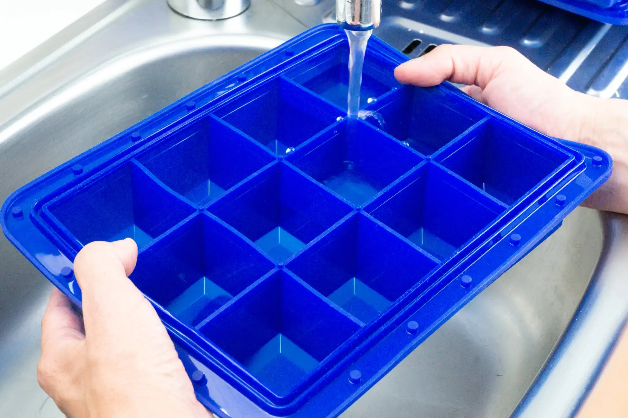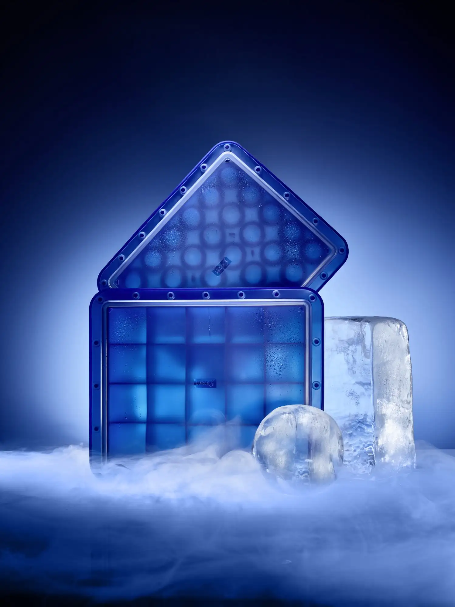 • Dobrze przylegająca pokrywka ułatwia przenoszenie napełnionej foremki i zapobiega przechodzeniu lodu zapachami z lodówki