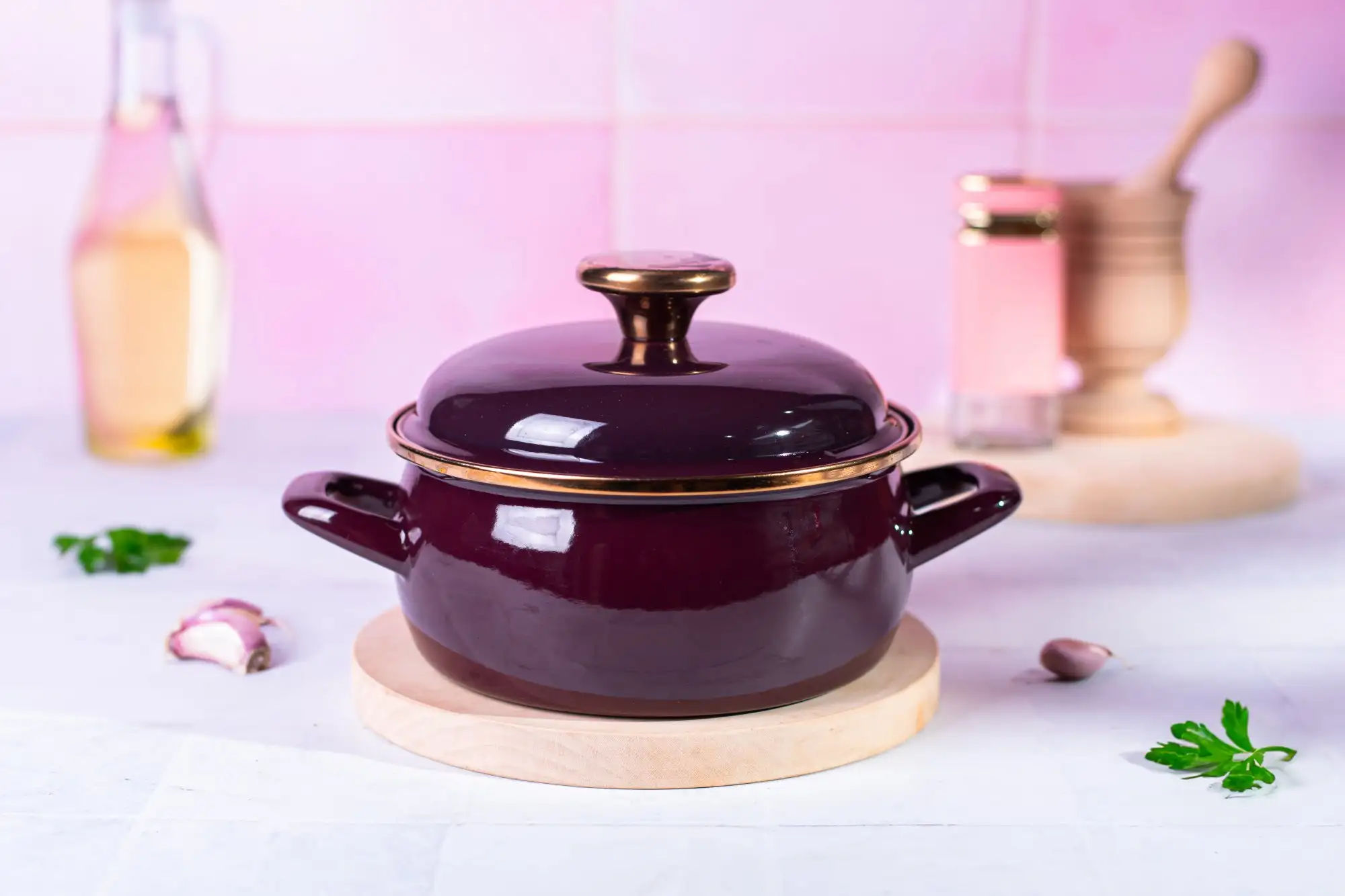 METALAC | BORDEAUX Niski garnek emaliowany 16 cm 1.5L, bordowy