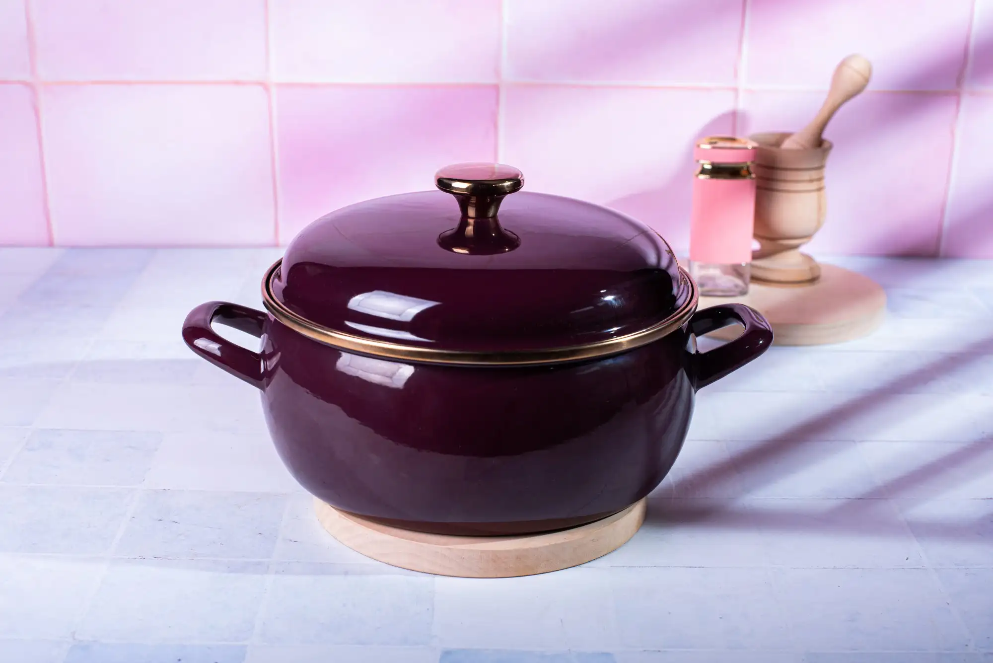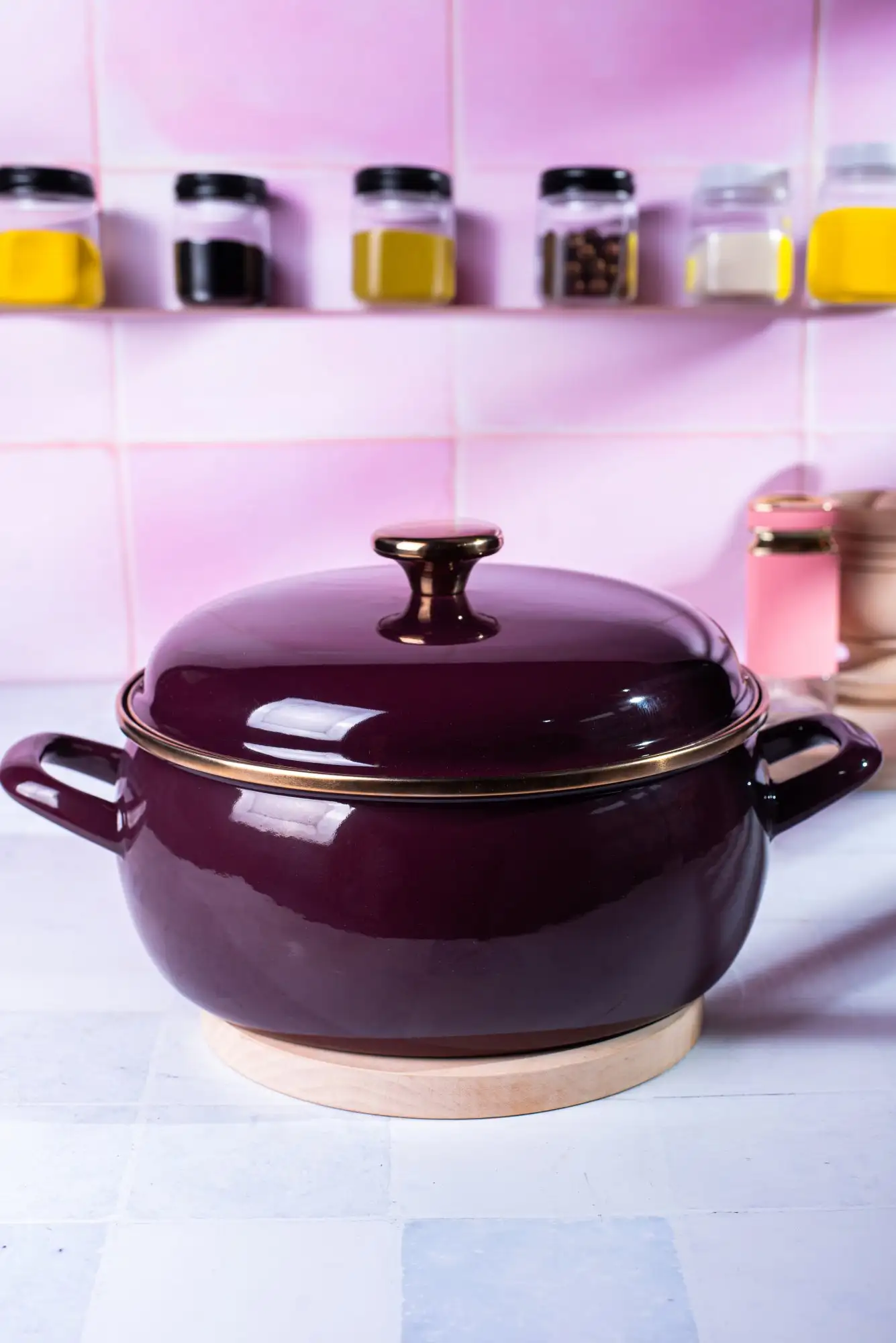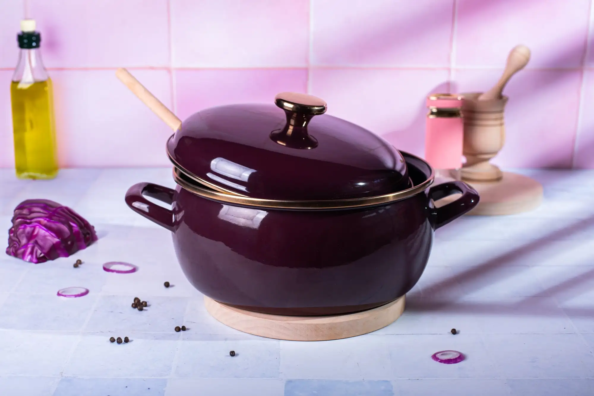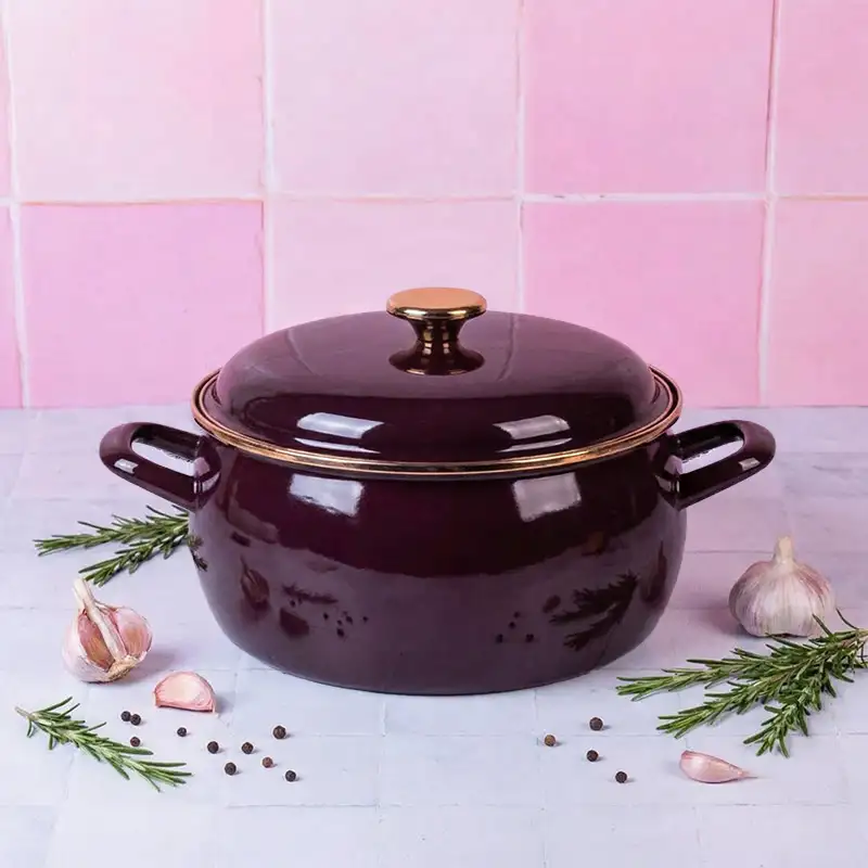 METALAC | BORDEAUX Niski garnek emaliowany z emaliowaną pokrywką 24 cm 5L, bordowy