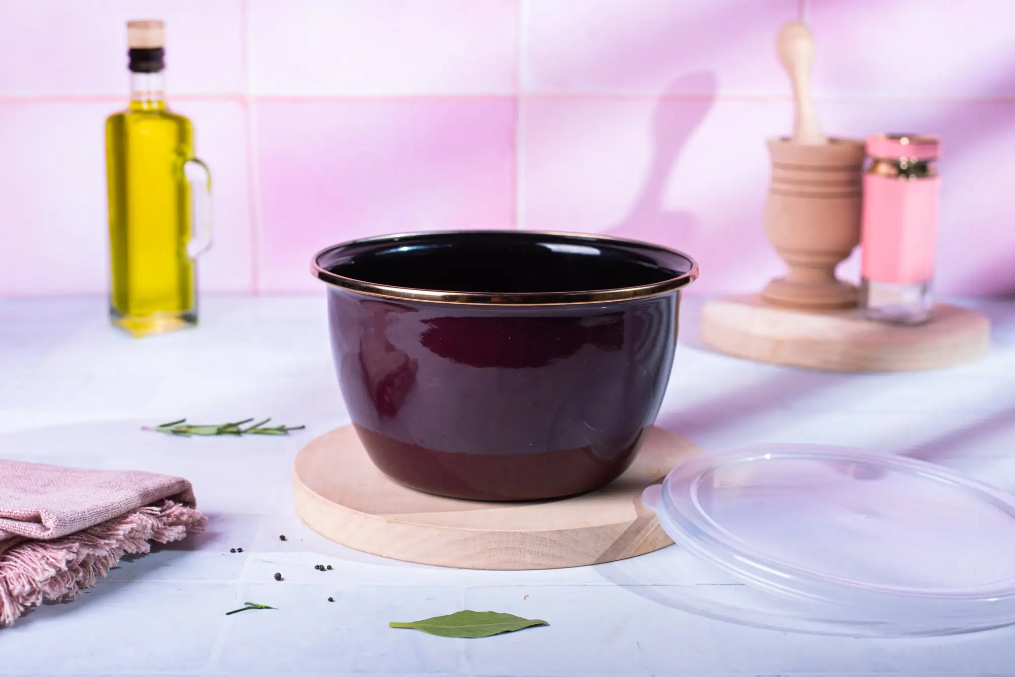 METALAC | BORDEAUX Pojemnik emaliowany z plastikową pokrywką 16 cm 1.7 L, bordowy
